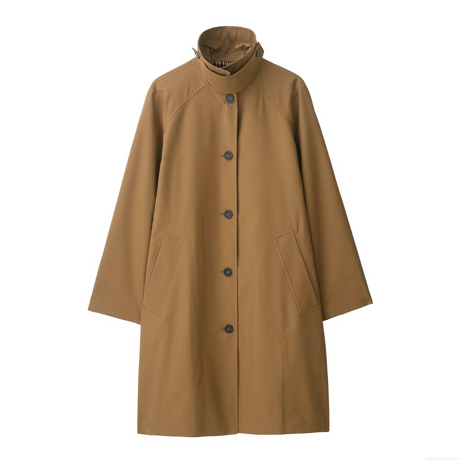 • Women's Elegant Camel Long Trench Coat Polyester Suede Blend With Checkered Lining Single Breasted Lapel Collar British Style Casual Windbreaker Overcoat