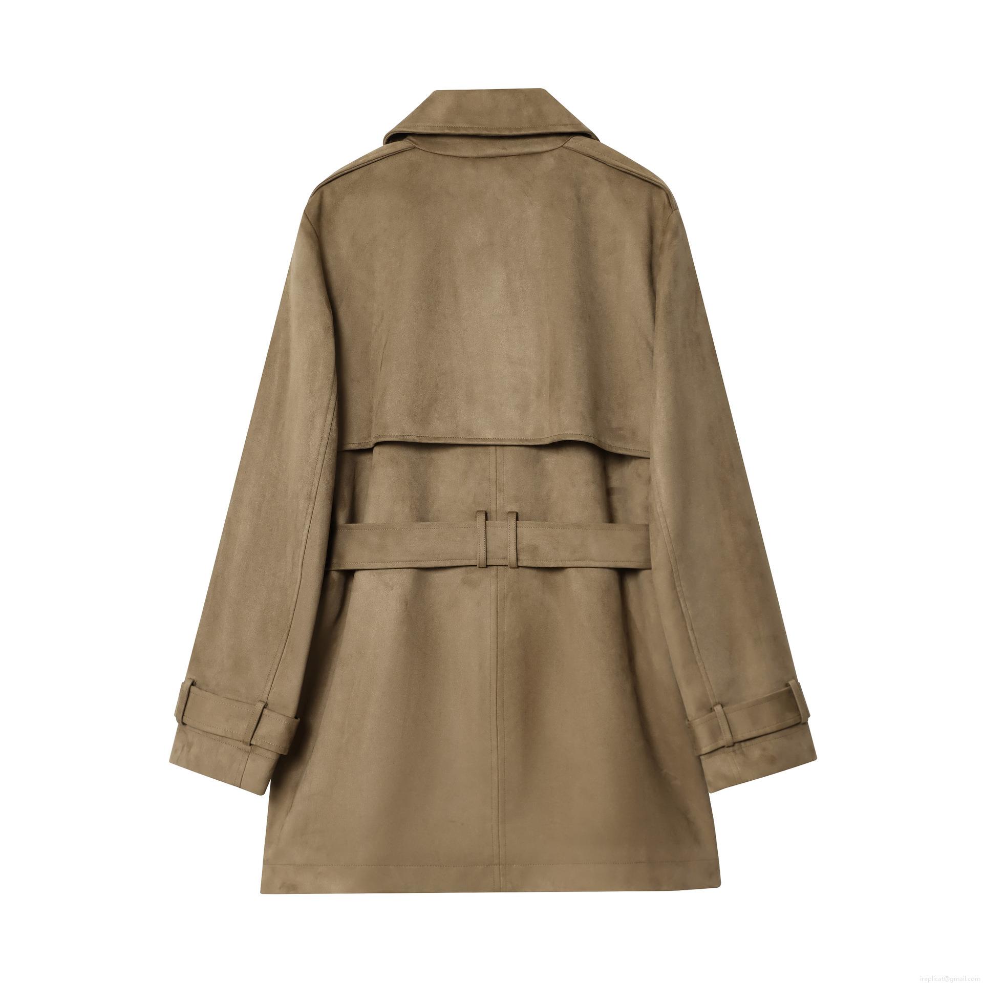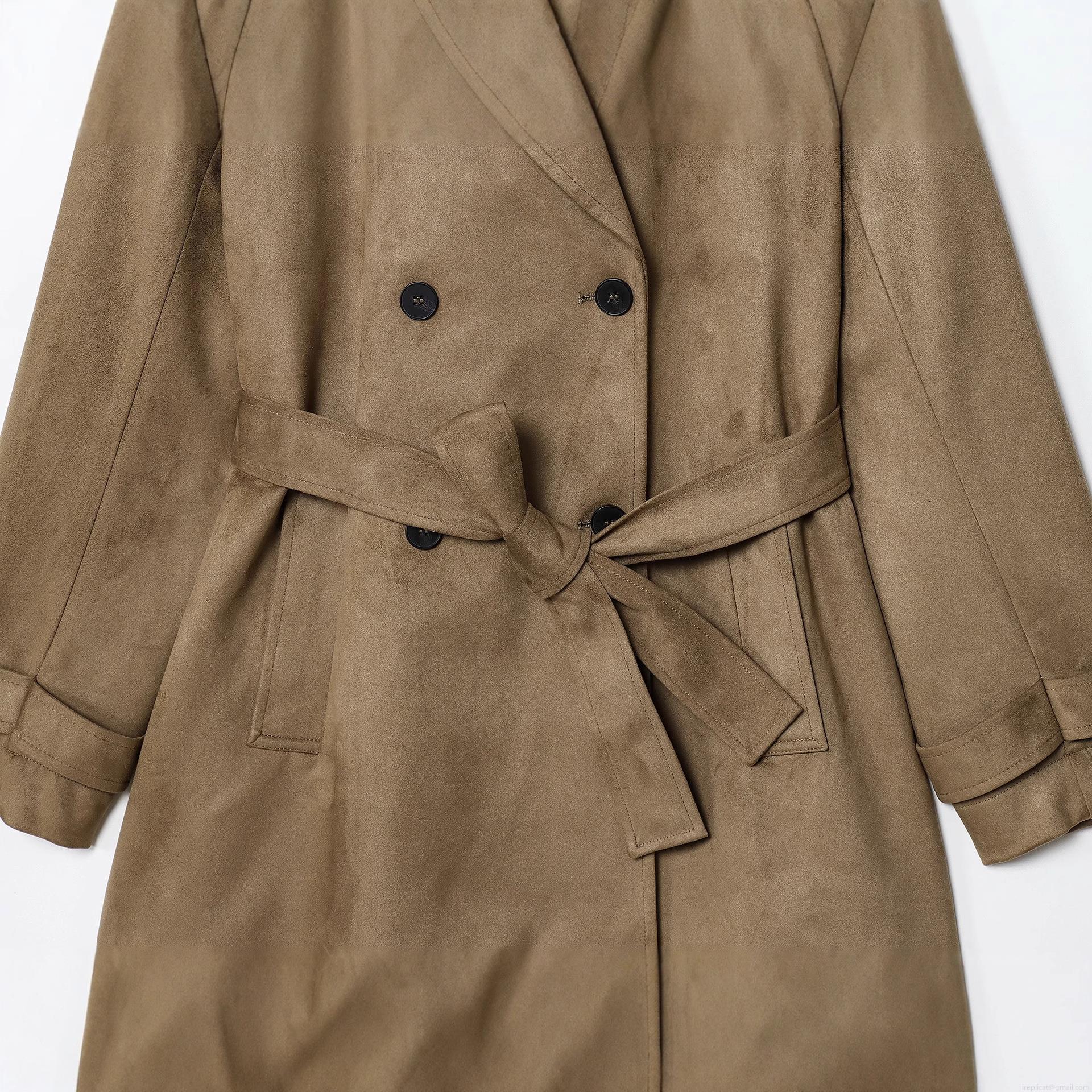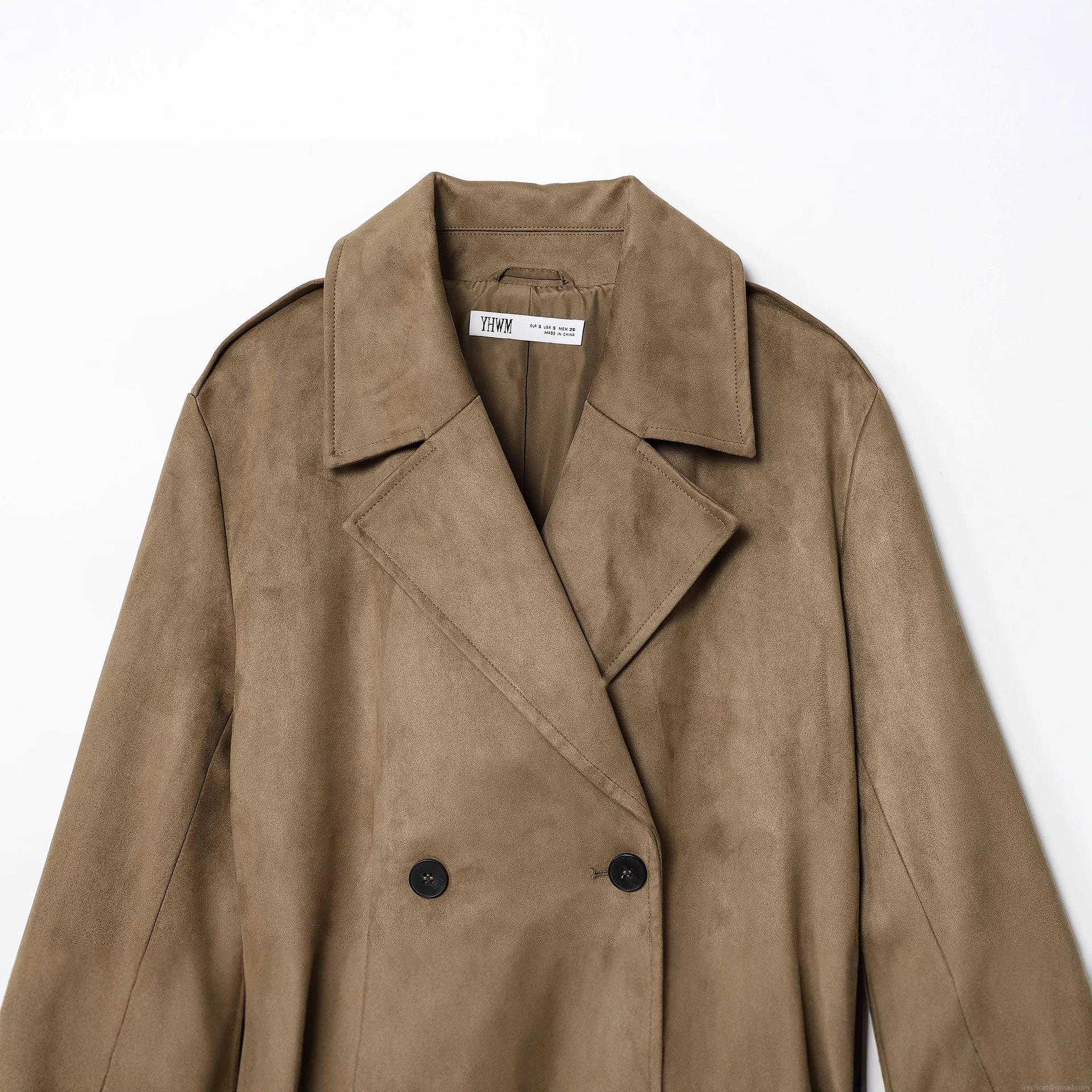 • Women's Elegant Faux Suede Mid-Length Trench Coat Double Breasted Belted Solid Color Windbreaker Jacket For Commuting Daily Wear Office Style