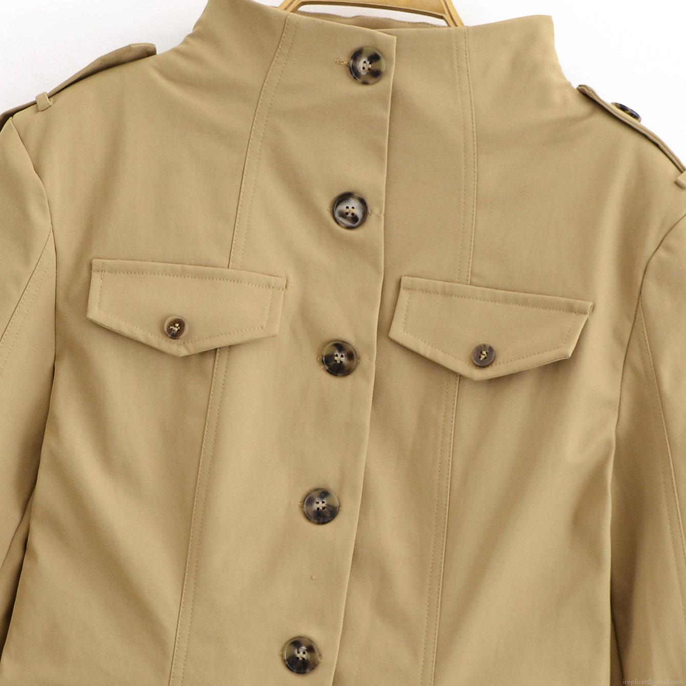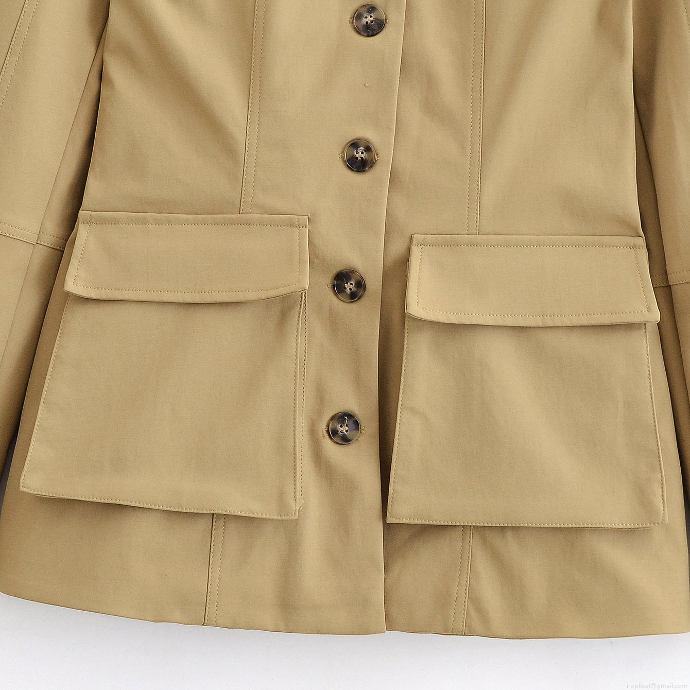 • Women's Elegant Khaki Military Utility Trench Coat 100% Polyester Stand Collar Long Sleeve Jacket With Flap Pockets And Epaulets Casual Spring Autumn Outerwear For Women