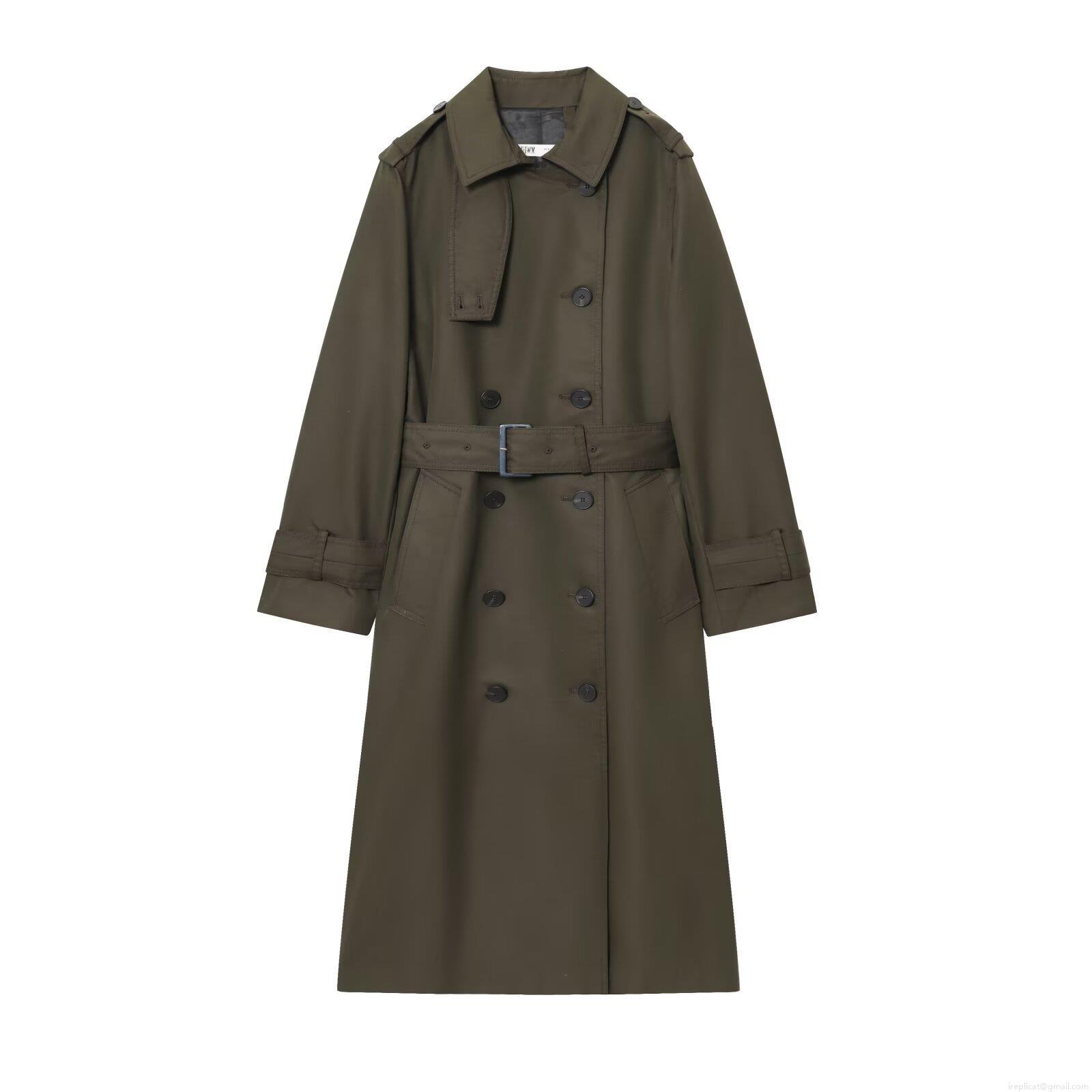 Women's Elegant Long Double Breasted Trench Coat With Belt Classic Lapel Windproof Suede Outwear Overcoat For Autumn Spring