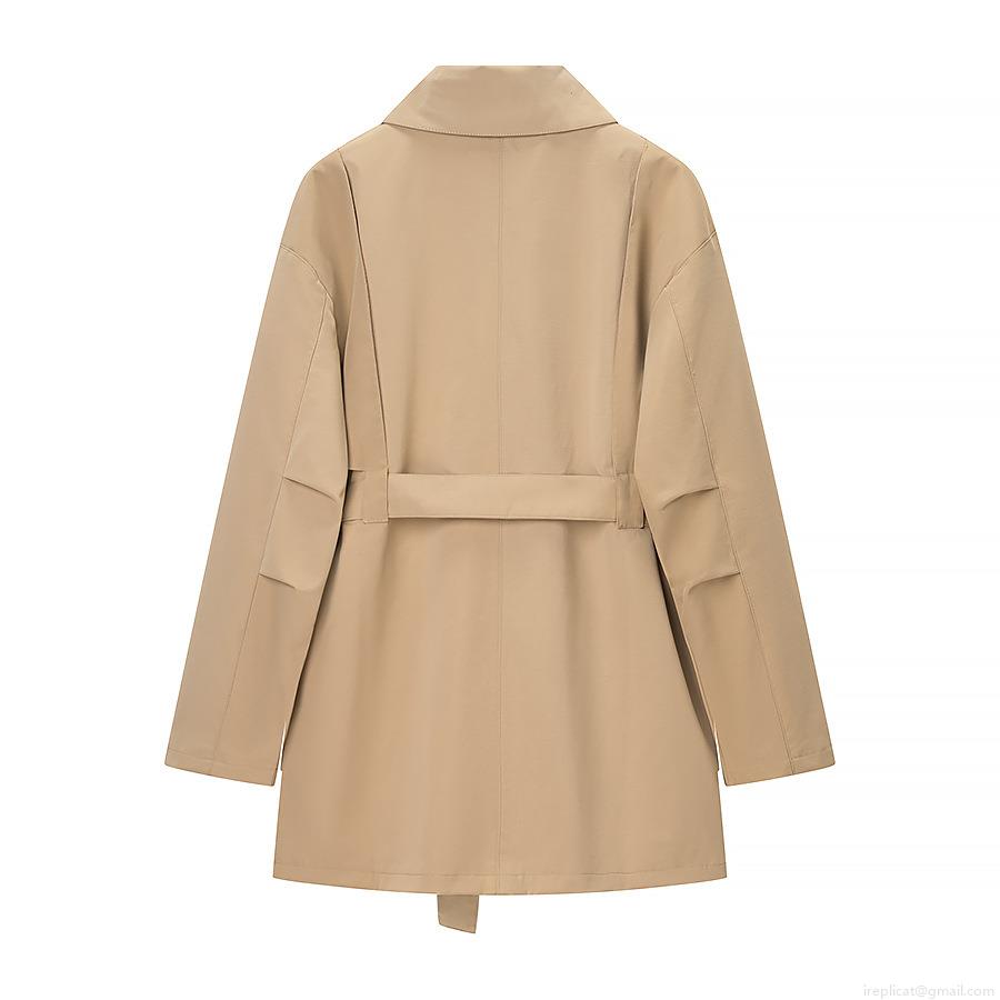 • Women's Elegant Polyester Trench Coat With Waist Tie Windproof Mid-Length Jacket For Casual Office Daily Wear Minimalist Khaki Outerwear