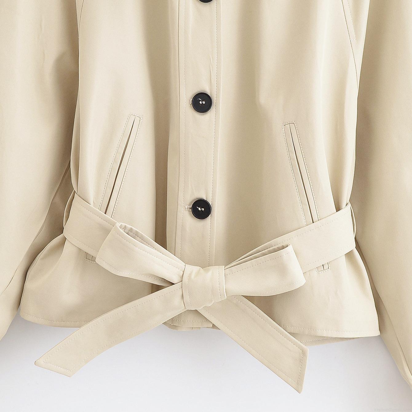 • Women's Elegant Short Trench Coat 100% Polyester Jacket With Belt Lapel Collar Single Breasted British Style Windbreaker Outwear For Ladies