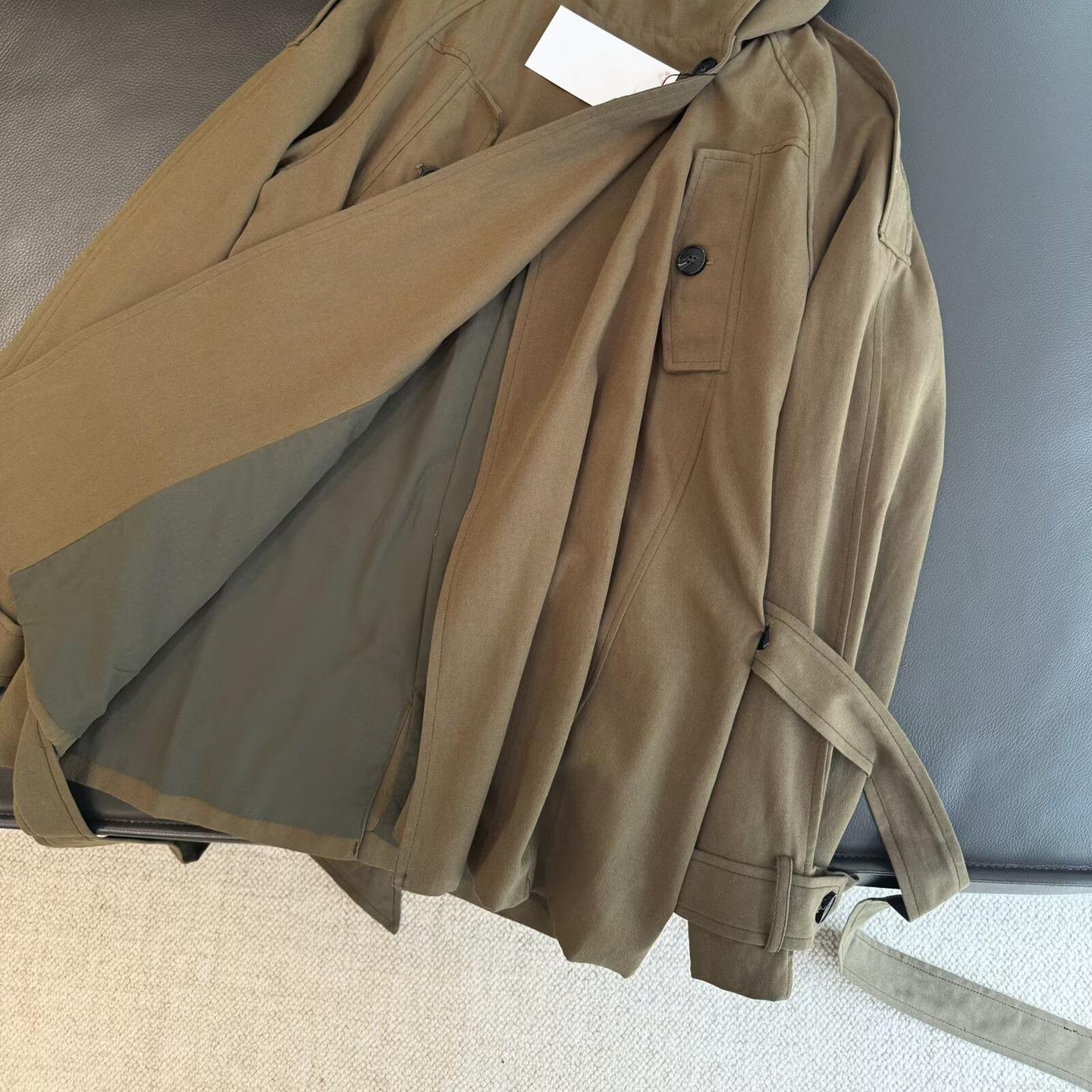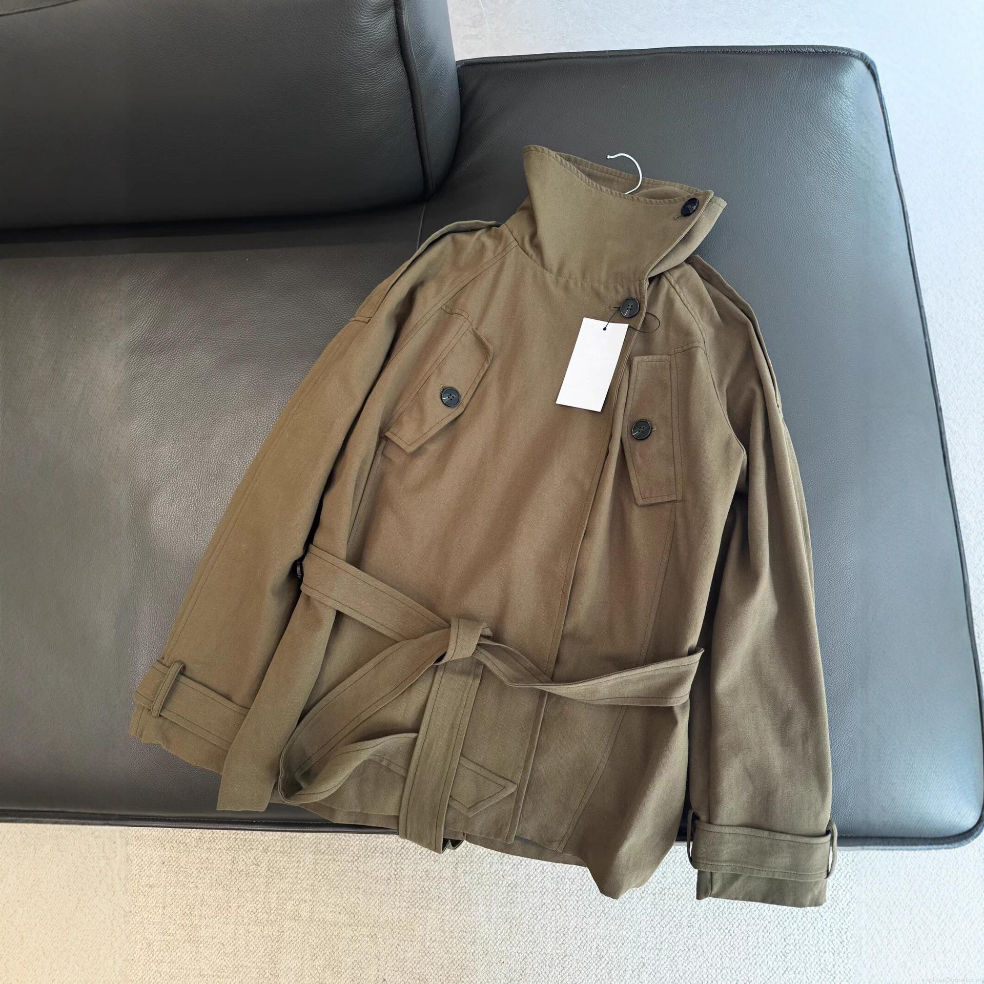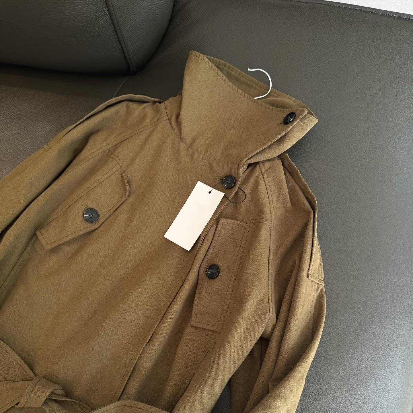 • Women's Elegant Stand Collar Mid-Length Trench Coat With Belt Twill Cotton Blend Windproof Jacket For Autumn Casual Ladies Outerwear