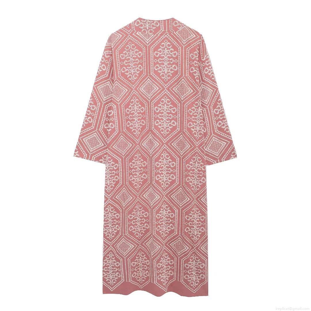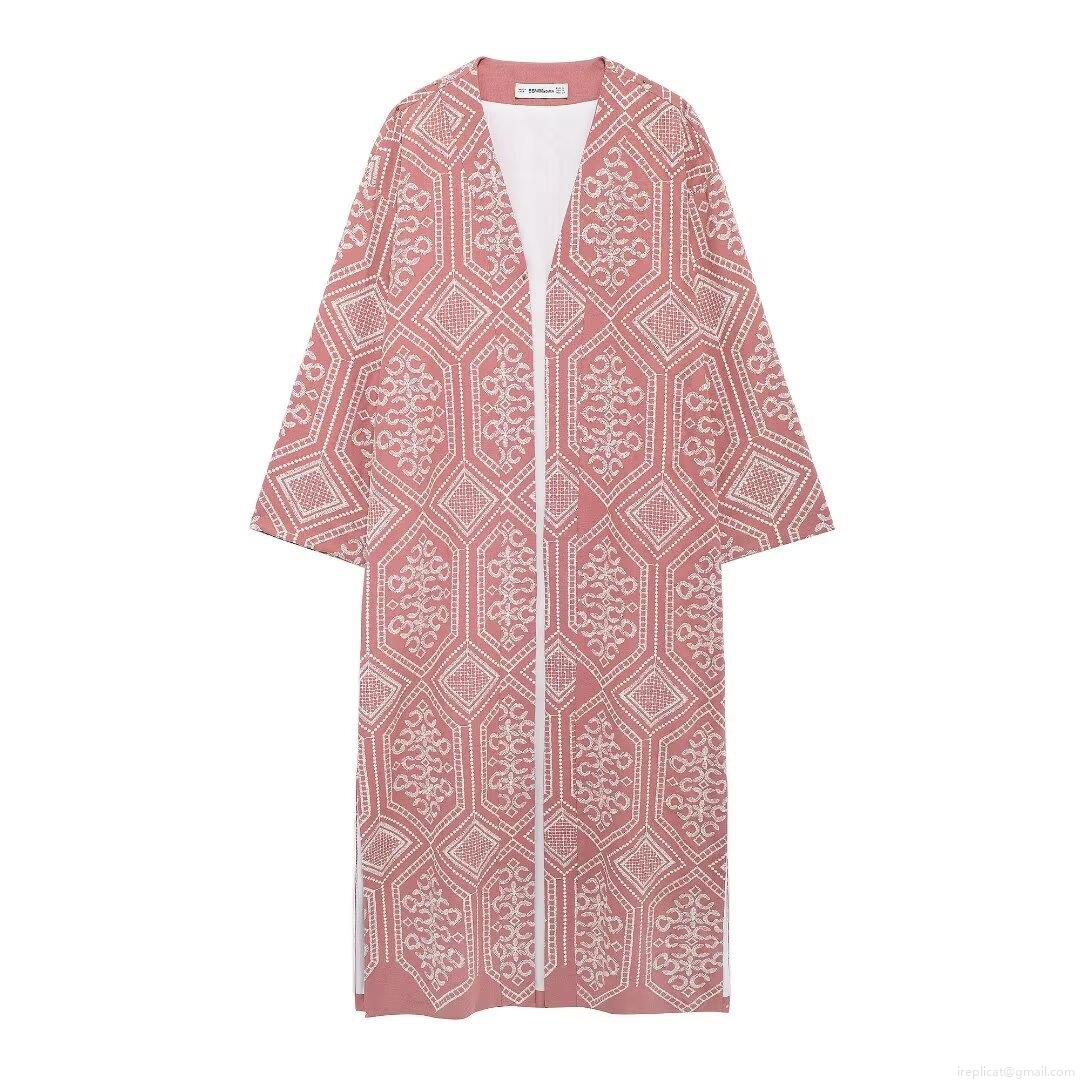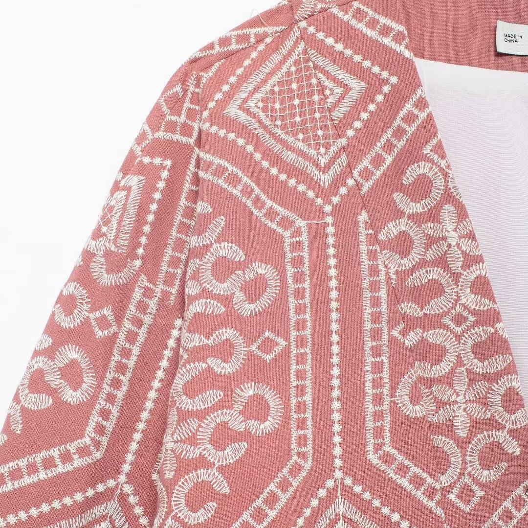 • Women's Ethnic Embroidery Extra Long Trench Coat Geometric Pattern Kimono Style Cardigan Jacket Autumn Winter Long Sleeve Polyester Outerwear