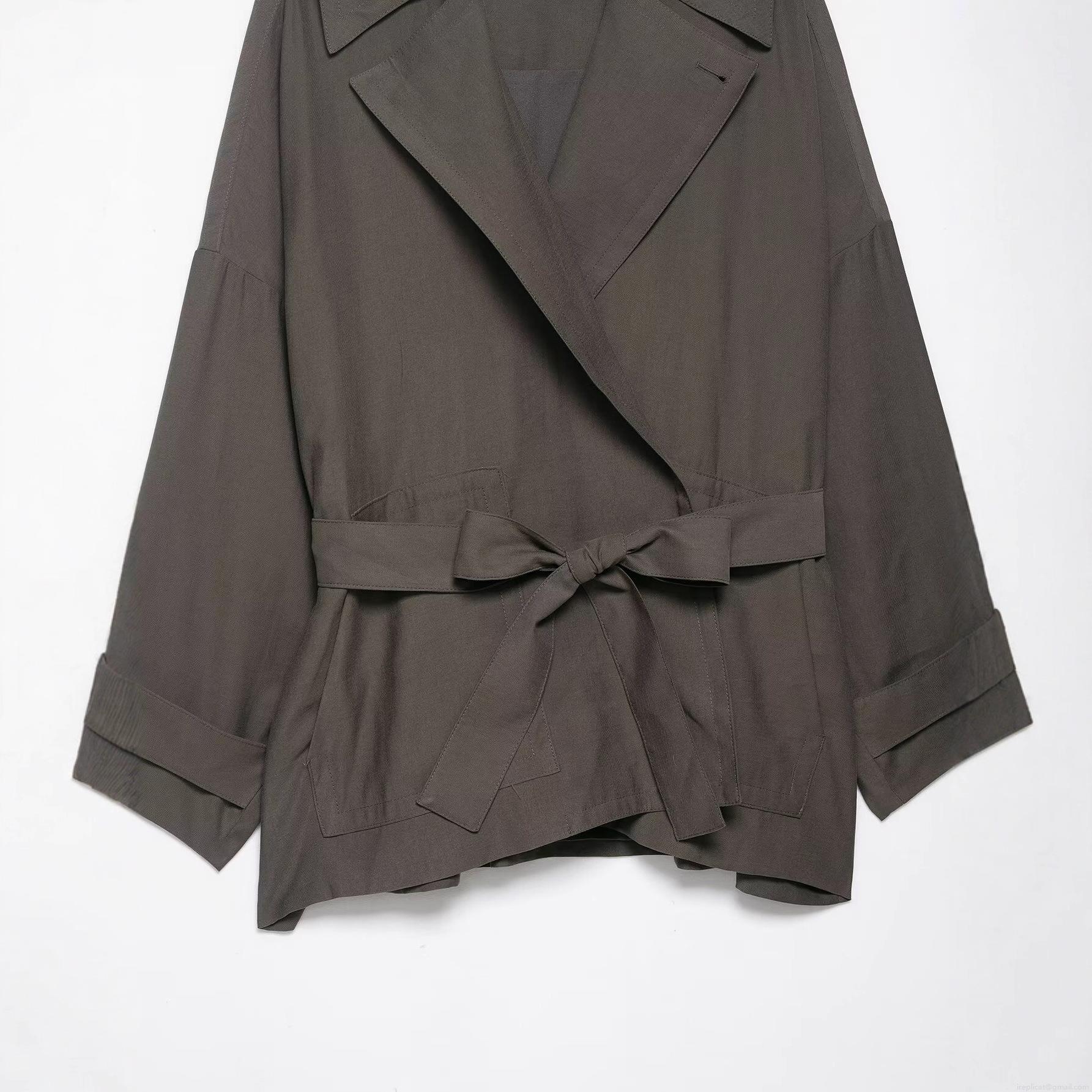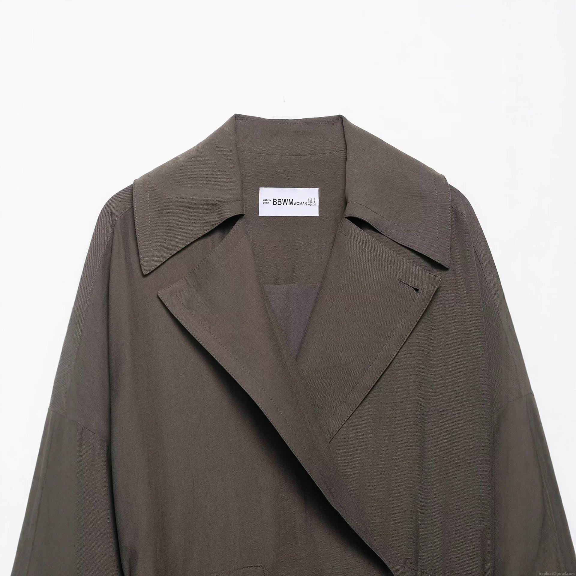 • Women's European Style Solid Color Trench Coat Polyester Waist Tie Lapel Long Sleeve Jacket Outerwear Street Style Fashion Lady Coat