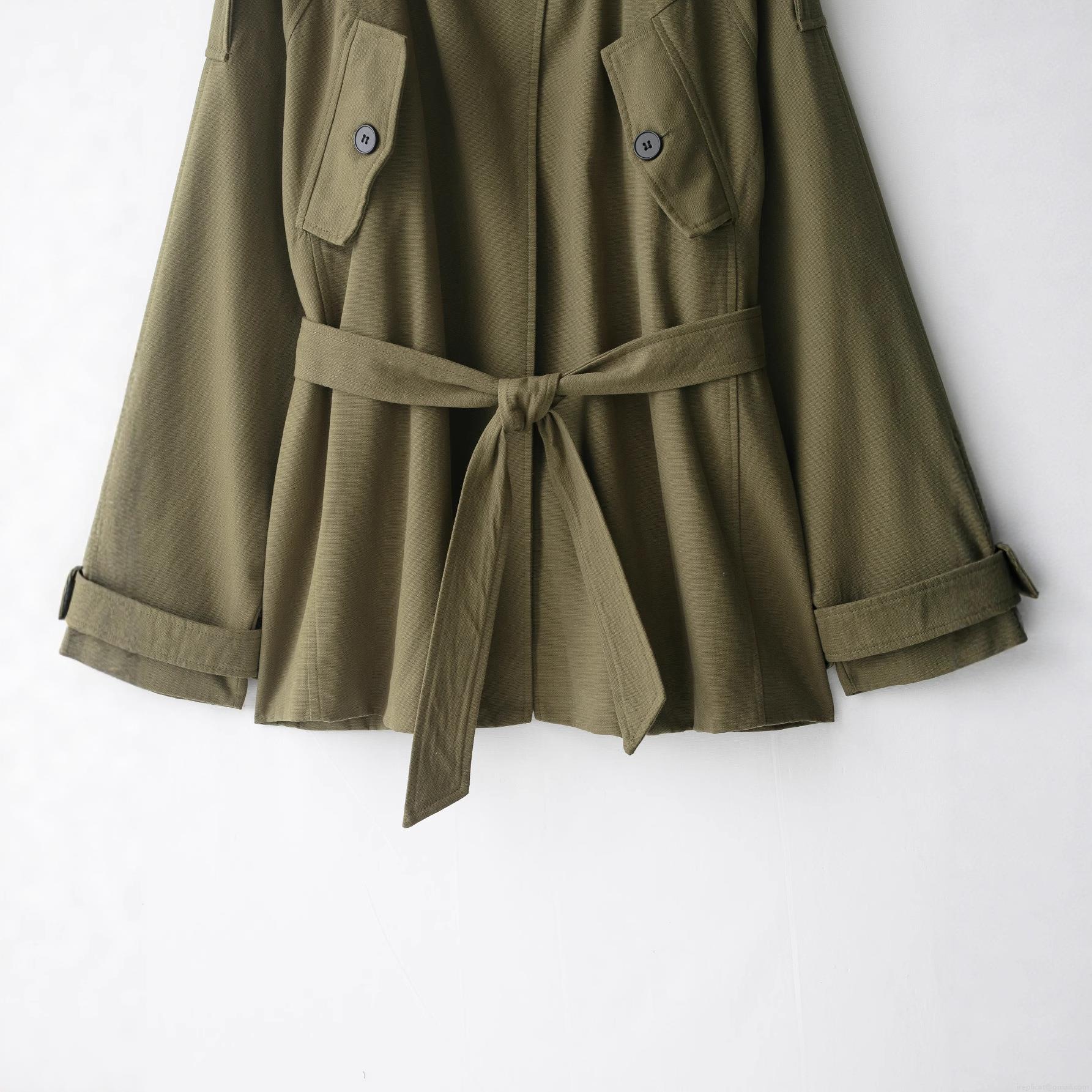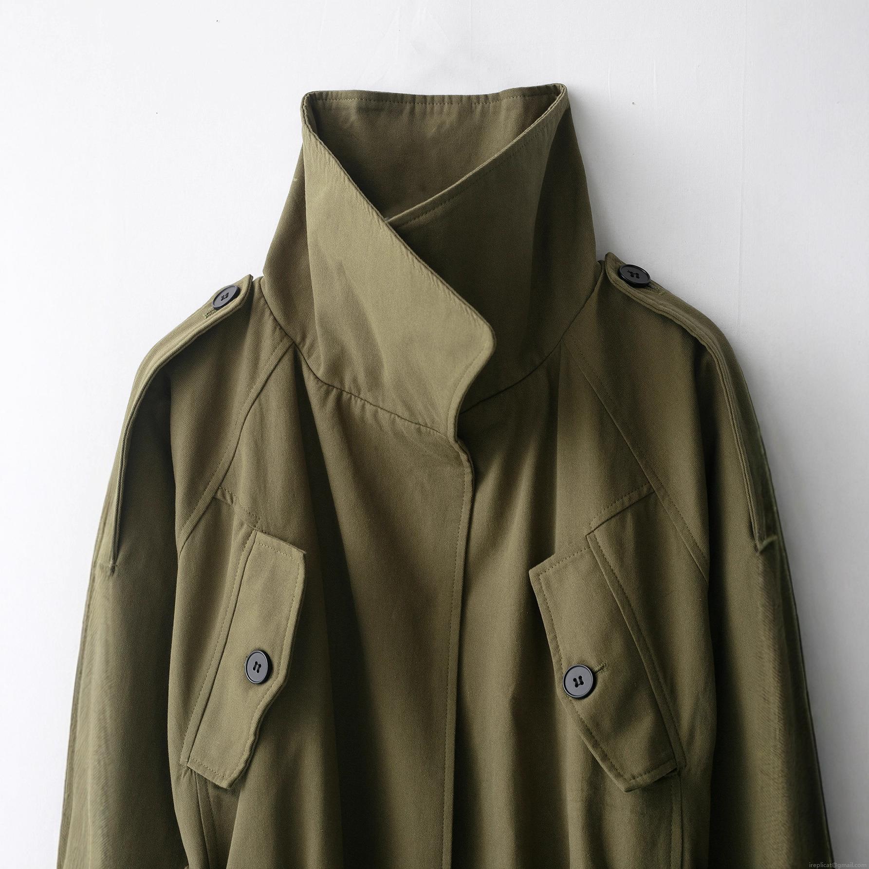 • Women's Fashion Army Green Trench Coat 100% Polyester Stand Collar Windbreaker With Belt Casual Slim Long Sleeve Outerwear For Ladies