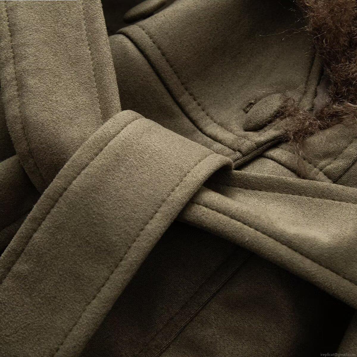 • Women's Fashion Double Breasted Faux Suede Trench Coat With Faux Fur Collar Cuffs And Belt Long Winter Overcoat Streetwear Olive Green Brown Warm Jacket