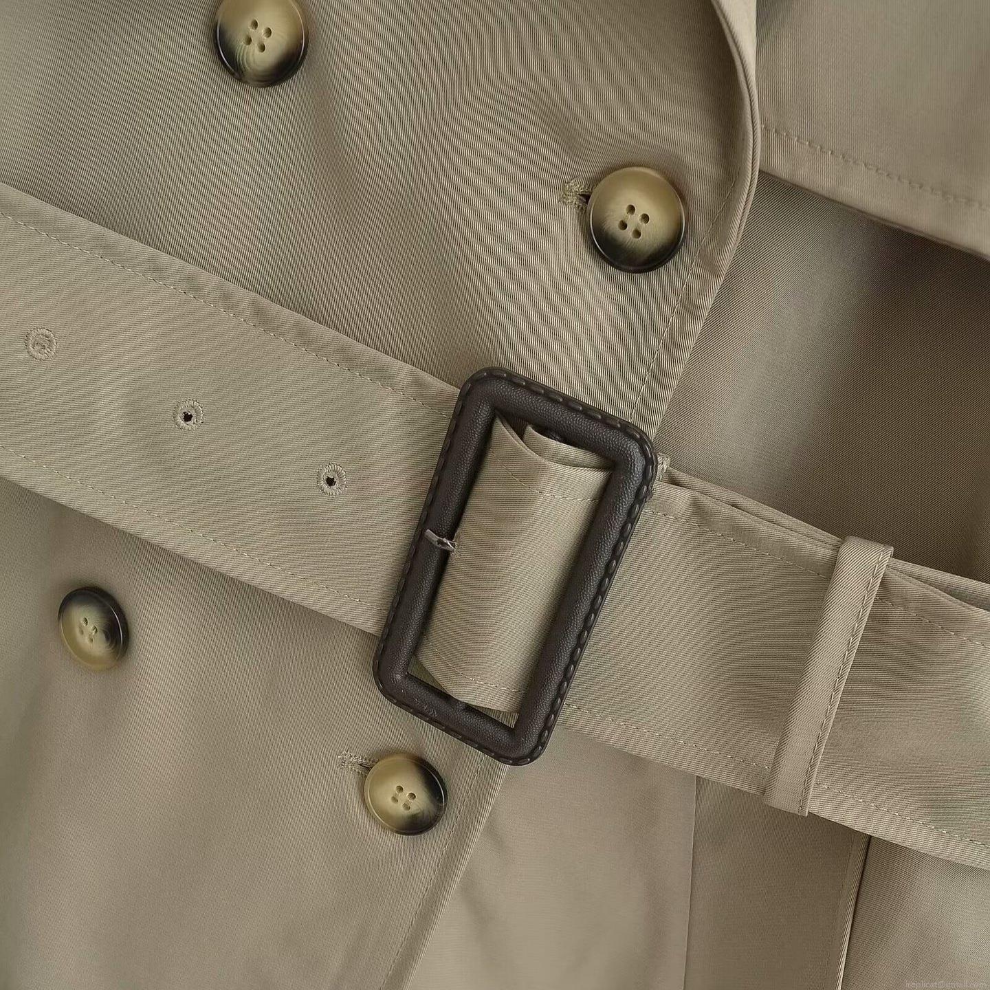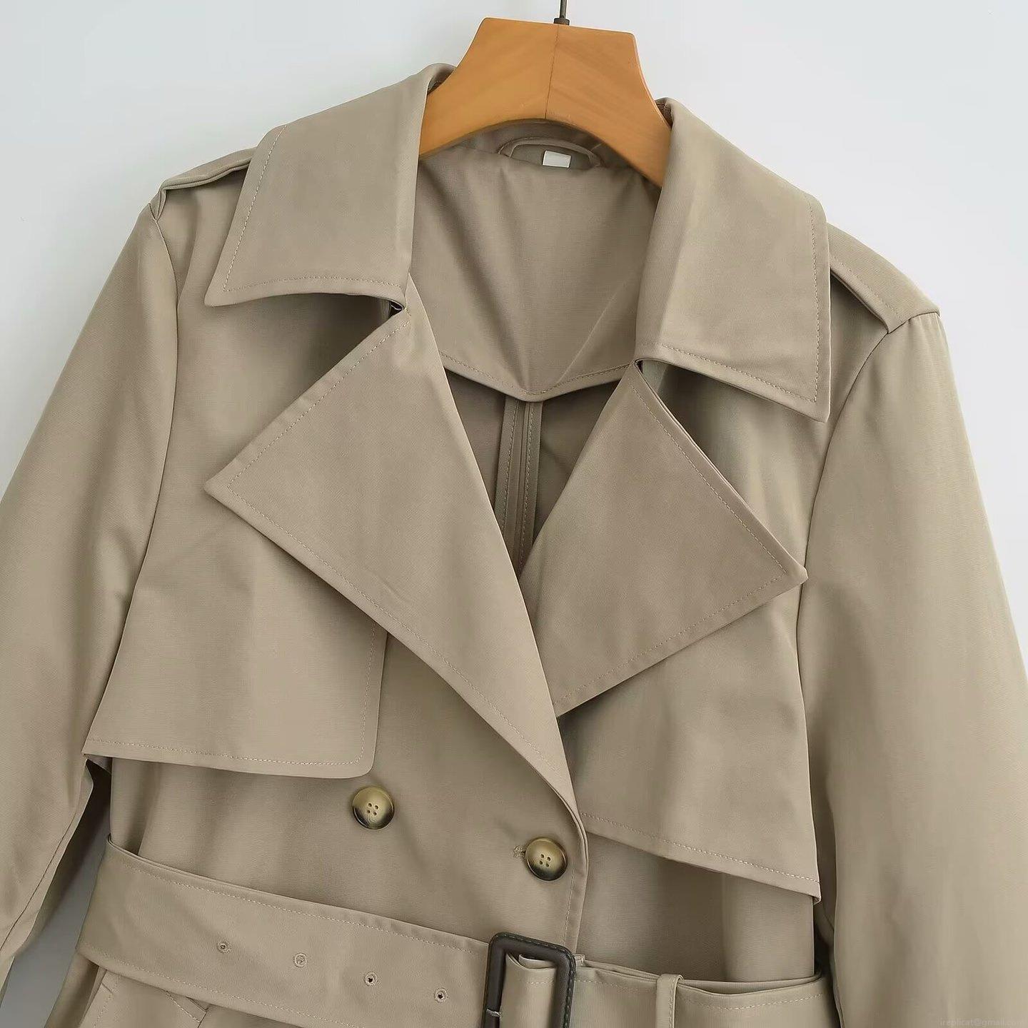 • Women's Fashion Double Breasted Trench Coat With Belt Classic Long Sleeve Mid-Length Casual Loose Windbreaker Jacket Office Outerwear Solid Color Design