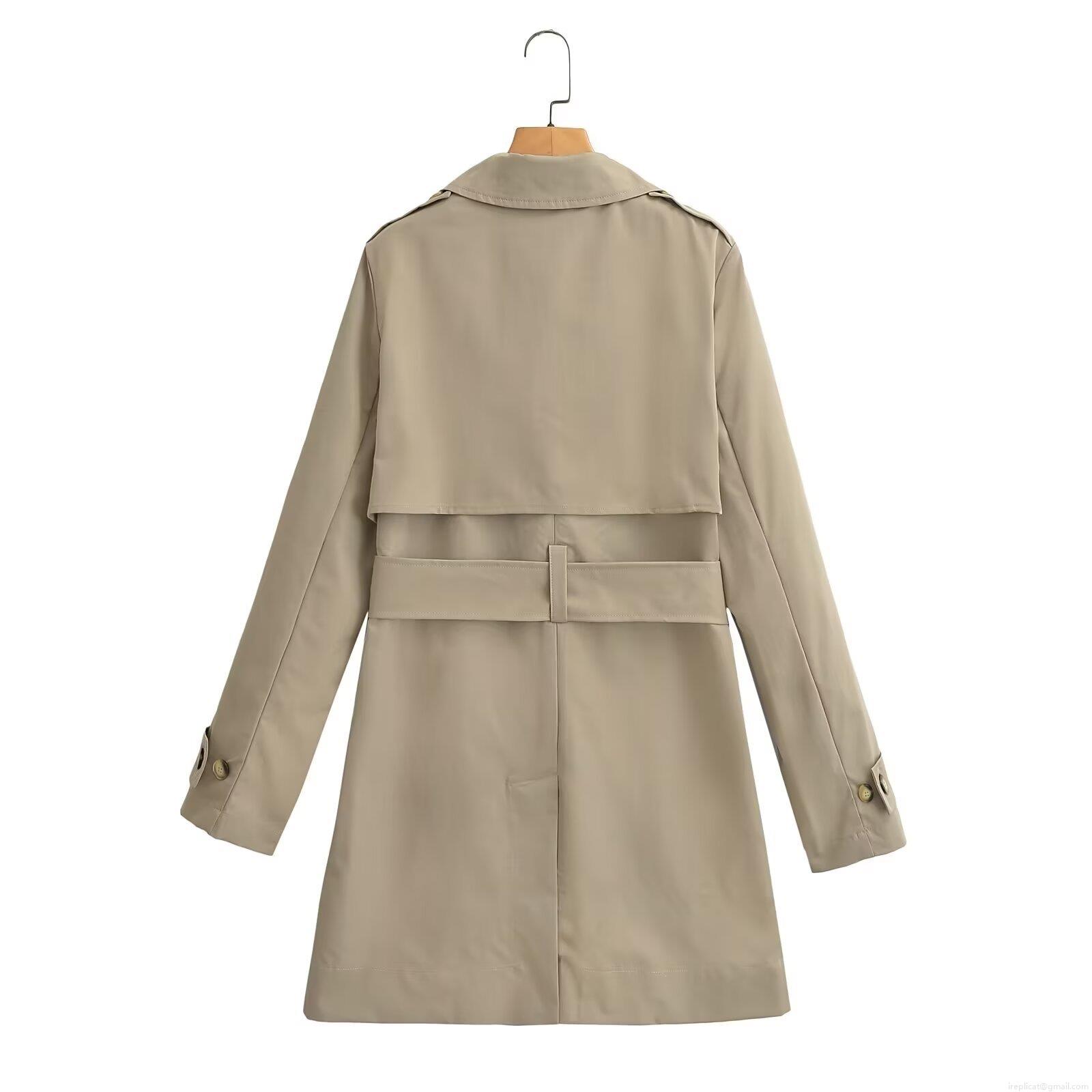 Women's Fashion Double Breasted Trench Coat With Belt Classic Long Sleeve Mid-Length Casual Loose Windbreaker Jacket Office Outerwear Solid Color Design