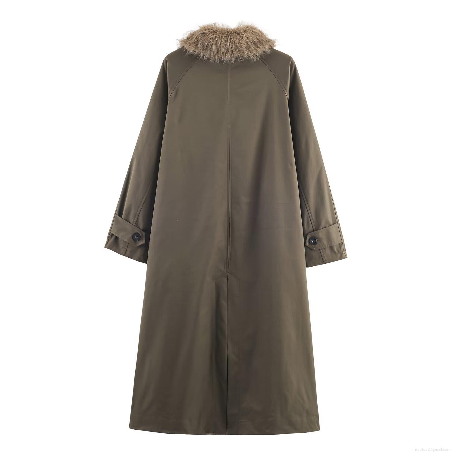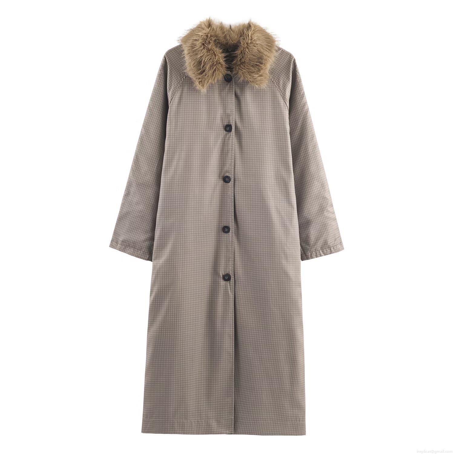 • Women's Fashion Elegant Long Trench Coat With Faux Fur Collar Checkered Pattern Double-Sided Wear Single-Breasted Polyester Winter Overcoat For Women
