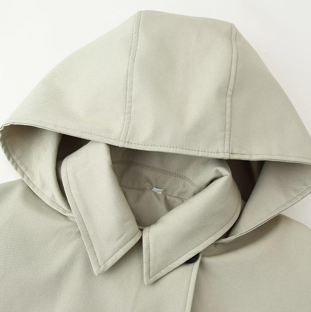 Women's Fashion Hooded Trench Coat Long Sleeve Loose Casual Windbreaker Jacket For Spring Summer Ladies Outwear Polyester Spandex Khaki Wine Red