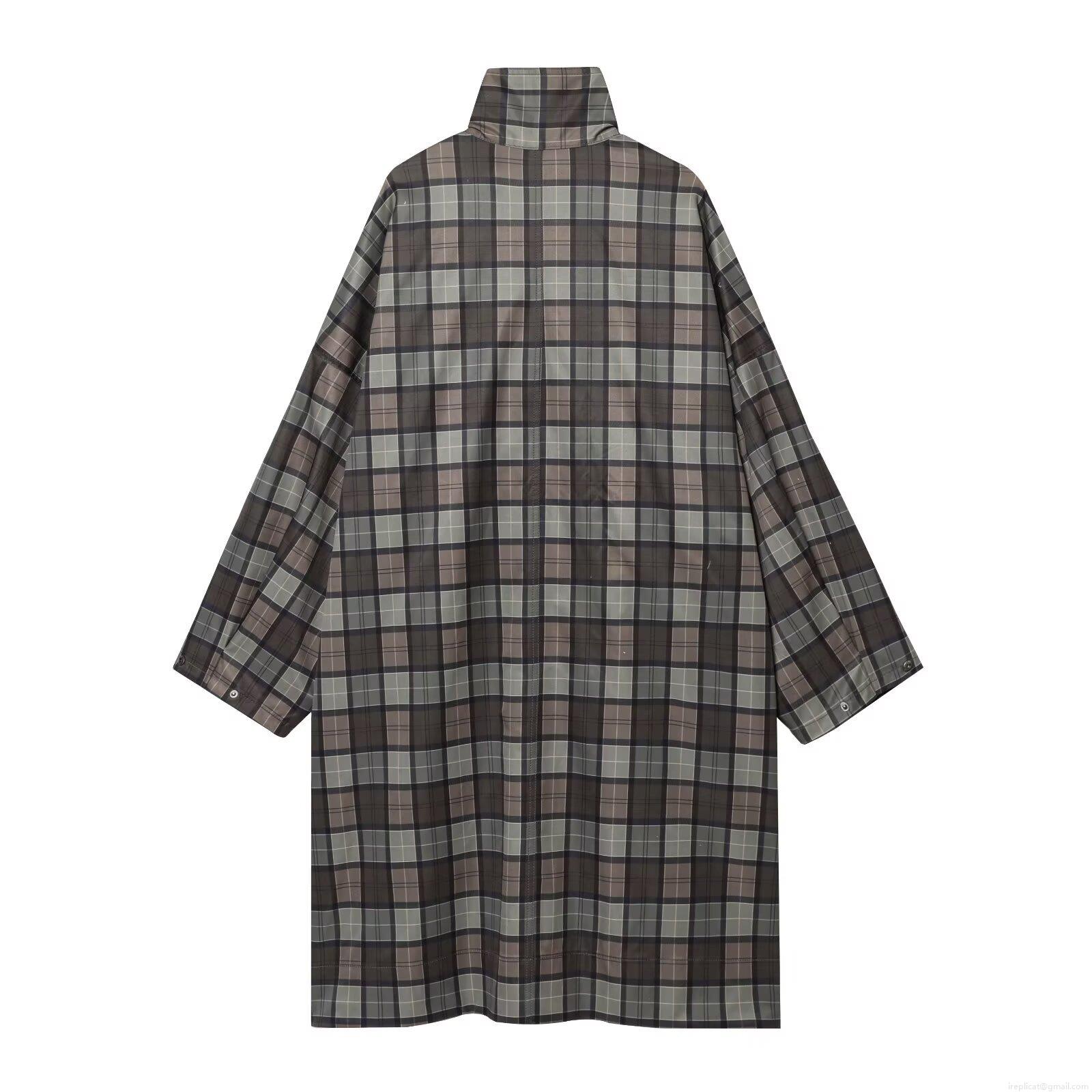 • Women's Fashion Plaid Trench Coat Long Sleeve Stand Collar Oversized Grid Jacket Coat With Pockets For Autumn Winter Outerwear