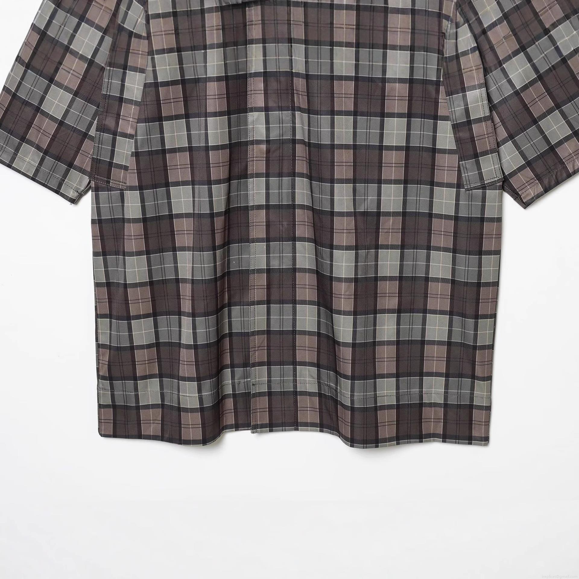 Gingham, Metal Buckle, Stand-up Collar, Work Pockets
