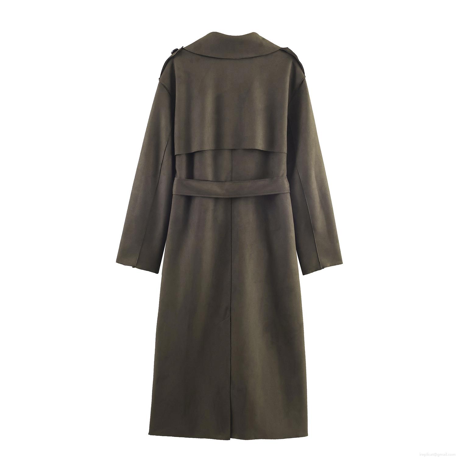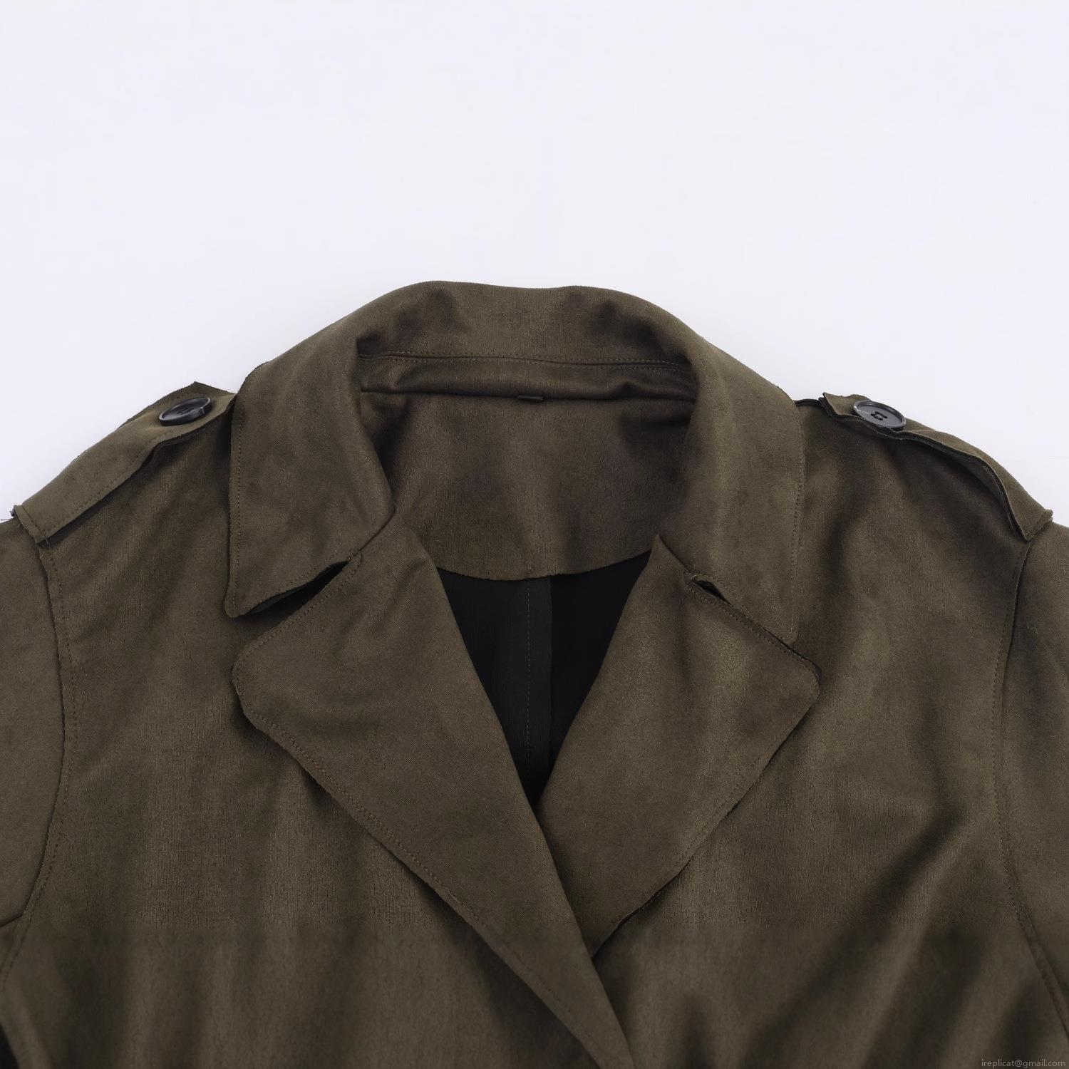 • Women's Fashion Suede Effect Long Trench Coat Double Breasted Belted Windbreaker Army Green Elegant Lapel Jacket For Daily Office Party