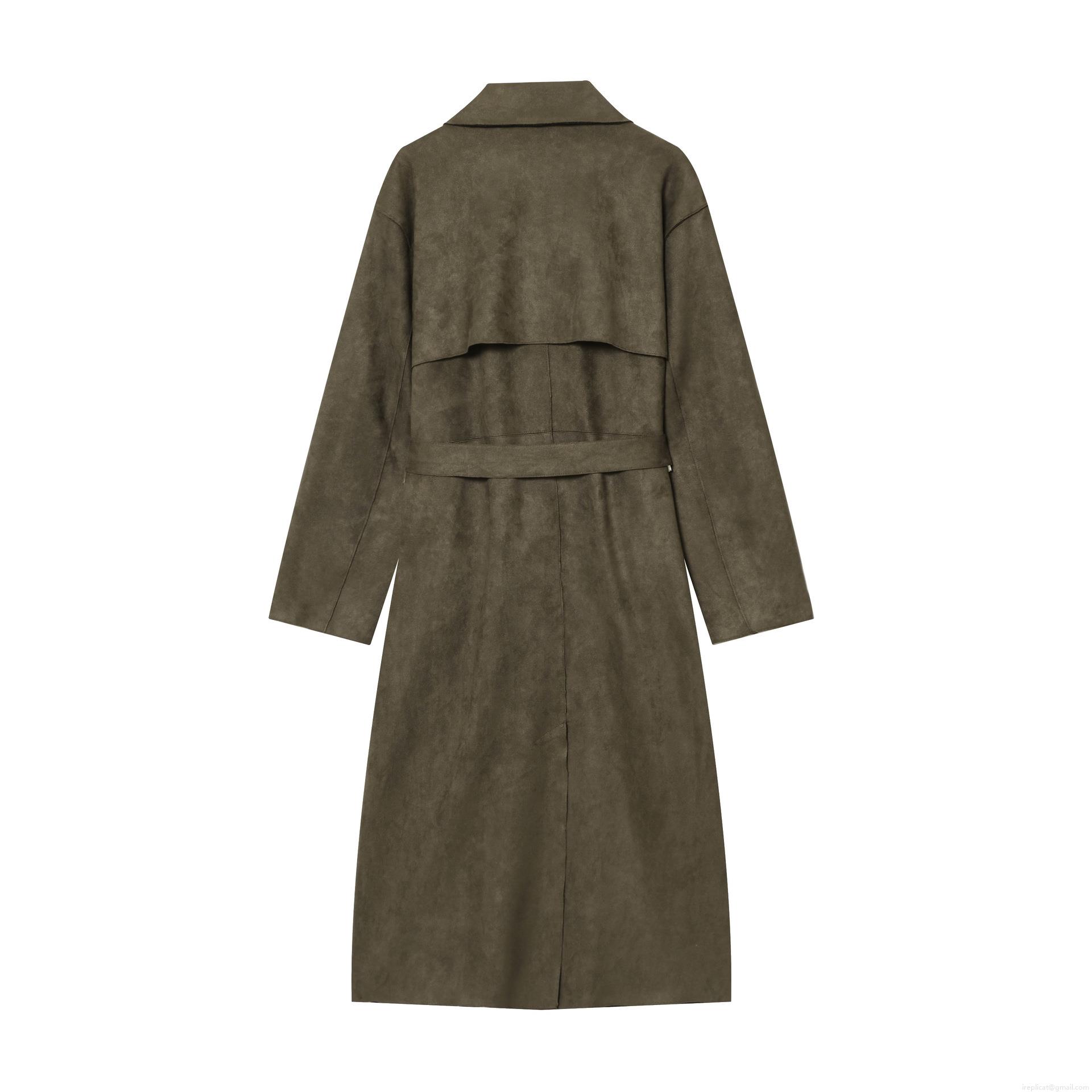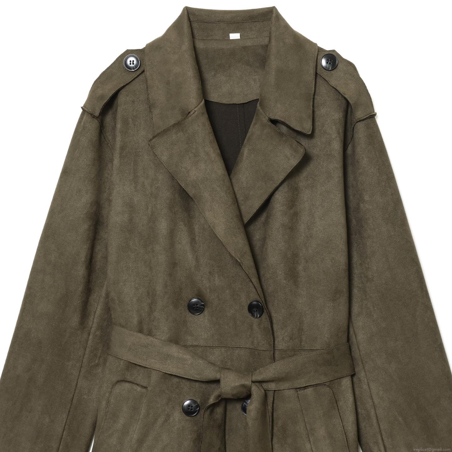 • Women's Faux Suede Long Trench Coat Double Breasted Belted Jacket Windbreaker Elegant Autumn Winter Solid Color Lapel Outerwear
