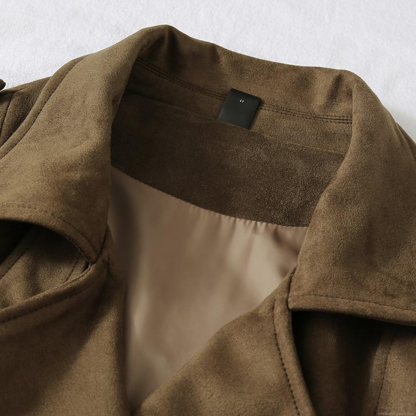 • Women's Faux Suede Trench Coat Double Breasted Belted Lapel Autumn Jacket Commuter British Style Solid Color Fashion Windbreaker Outerwear