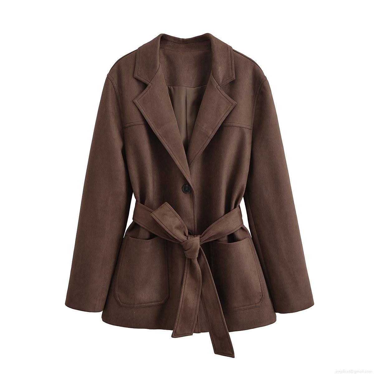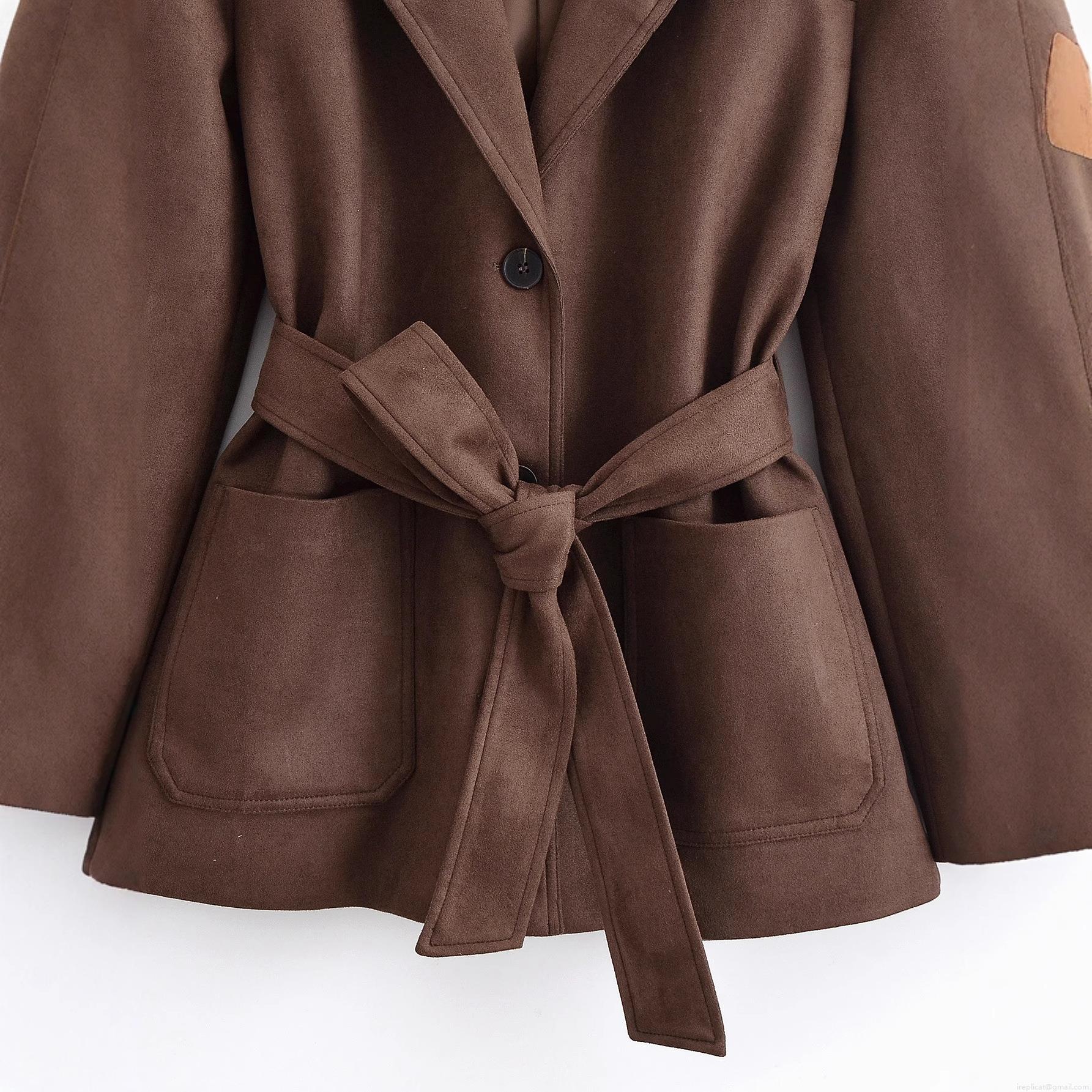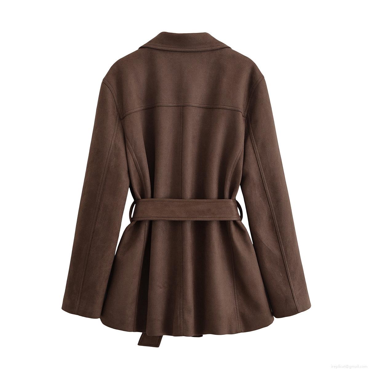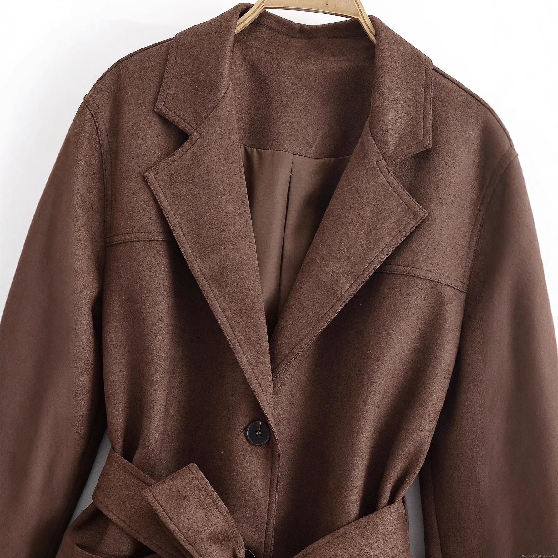 • Women's Faux Suede Trench Coat Lapel Tie Waist Mid-Length Overcoat Elegant Solid Color Long Sleeve Jacket For Autumn Spring Women Outerwear