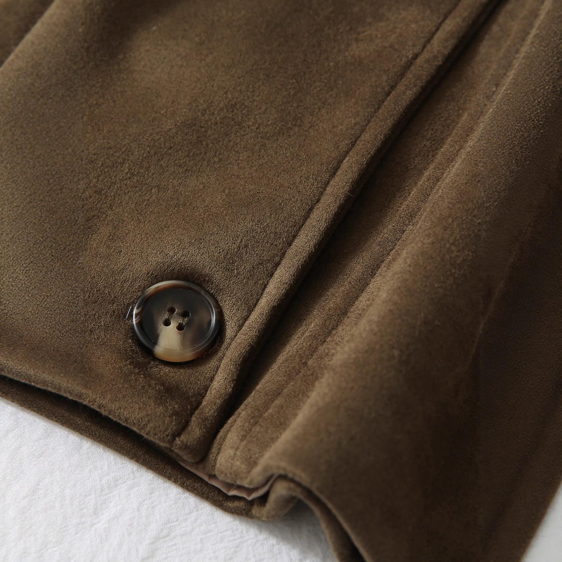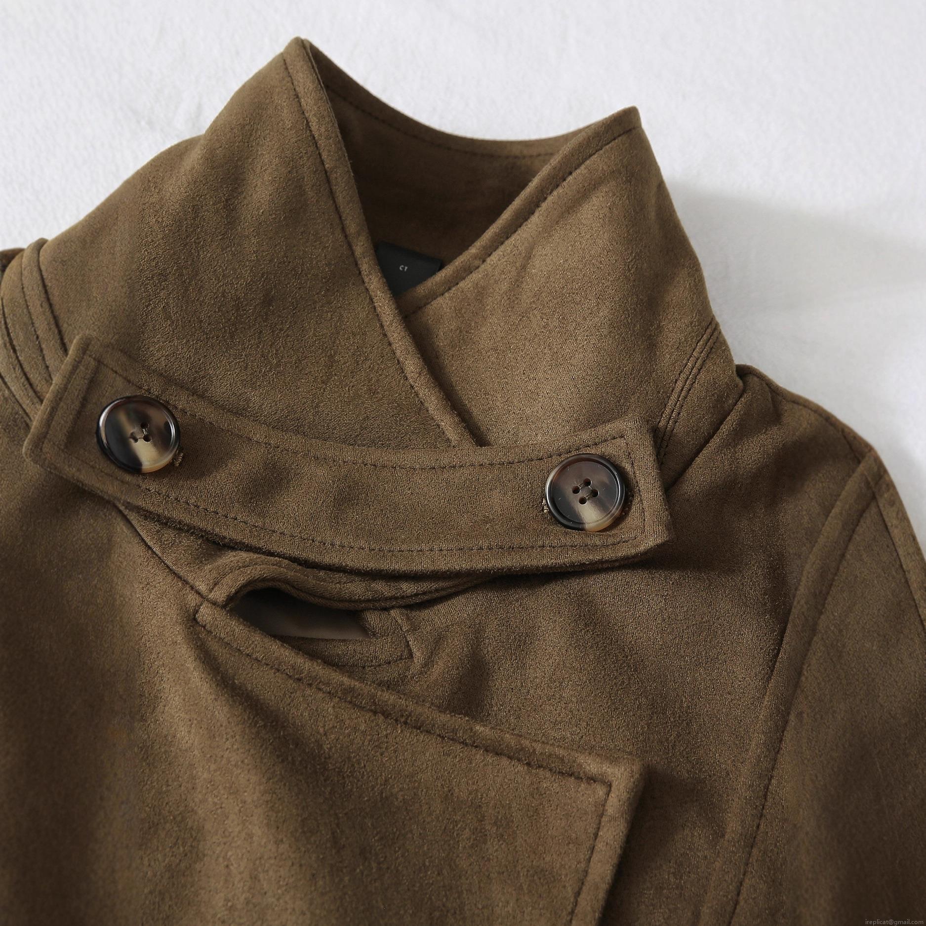 • Women's Faux Suede Trench Coat Short Polyester Windbreaker Jacket With Belt Retro Lapel Long Sleeve Outerwear For Casual Daily Lady Elegant Style