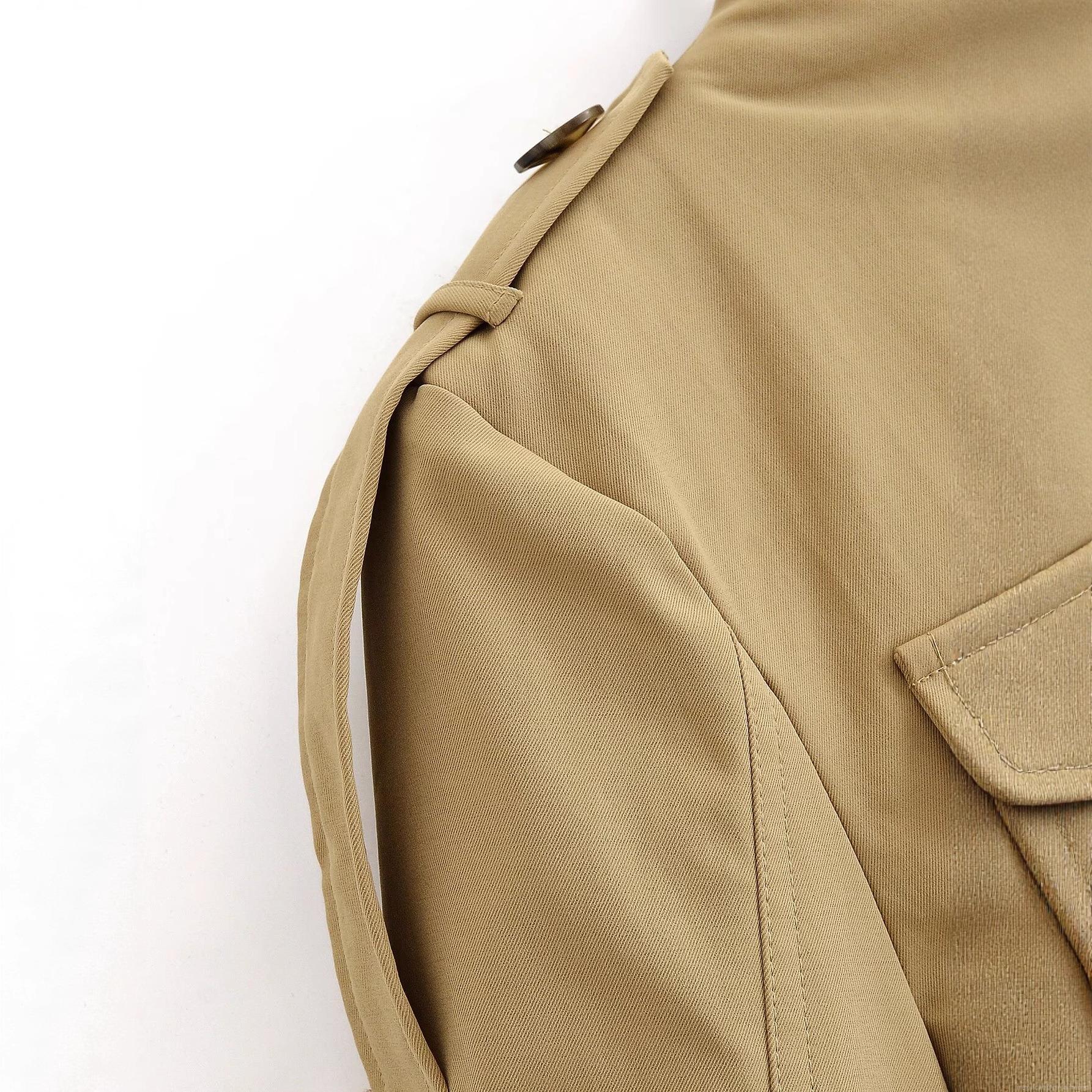 • Women's Khaki Polyester Stand Collar Windbreaker Jacket Single Breasted Multi-Pocket Streetwear Autumn Outerwear With Epaulets And Cuff Straps