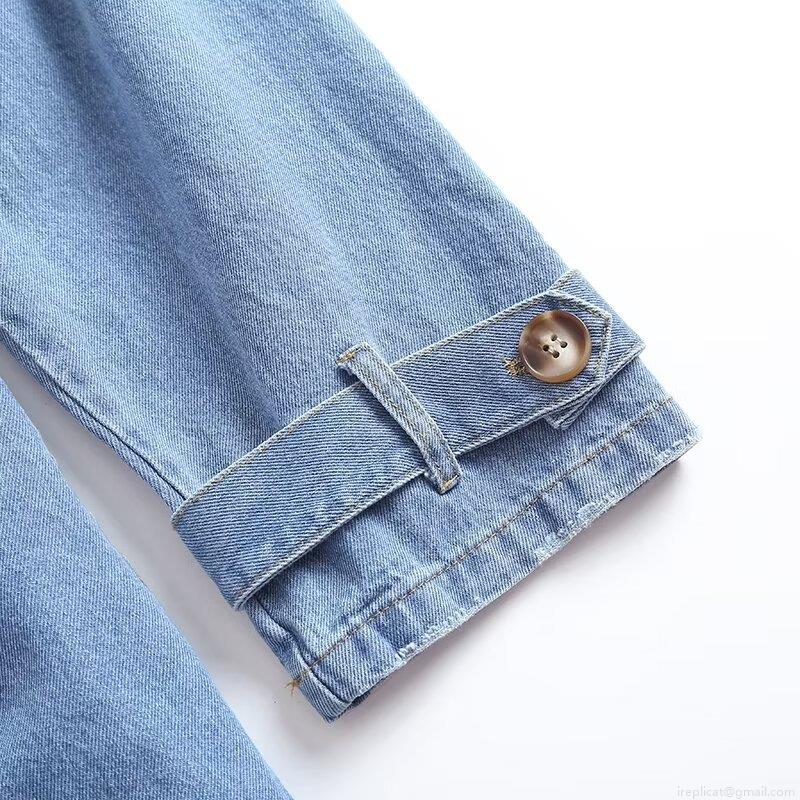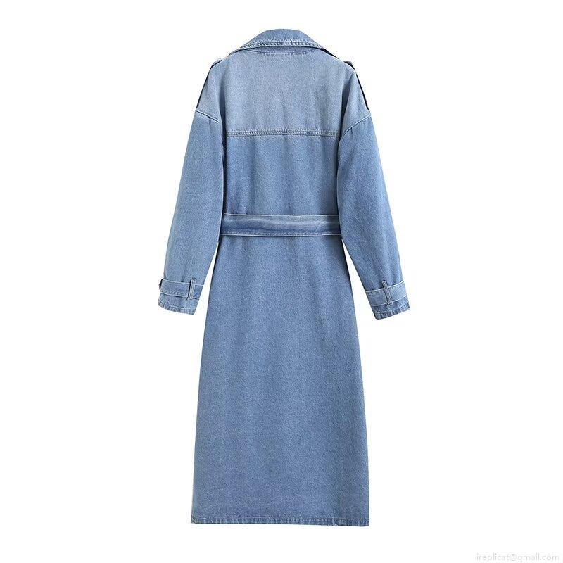 • Women's Long Denim Trench Coat Double-Breasted Cotton Blend Jacket With Adjustable Belt Lapel Collar Casual Autumn Winter Fashion Outwear For Women