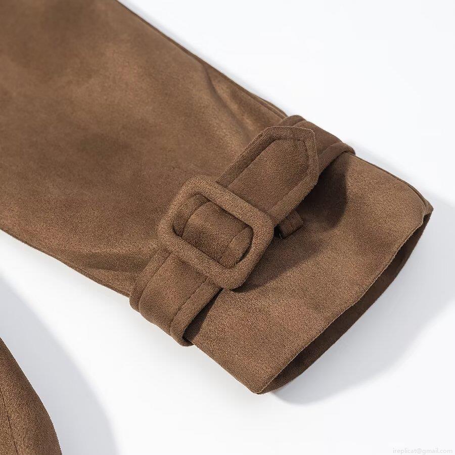 • Women's Long Faux Suede Trench Coat Double Breasted Belted Jacket Elegant British Style Lapel Overcoat For Autumn Winter Office Street Lady