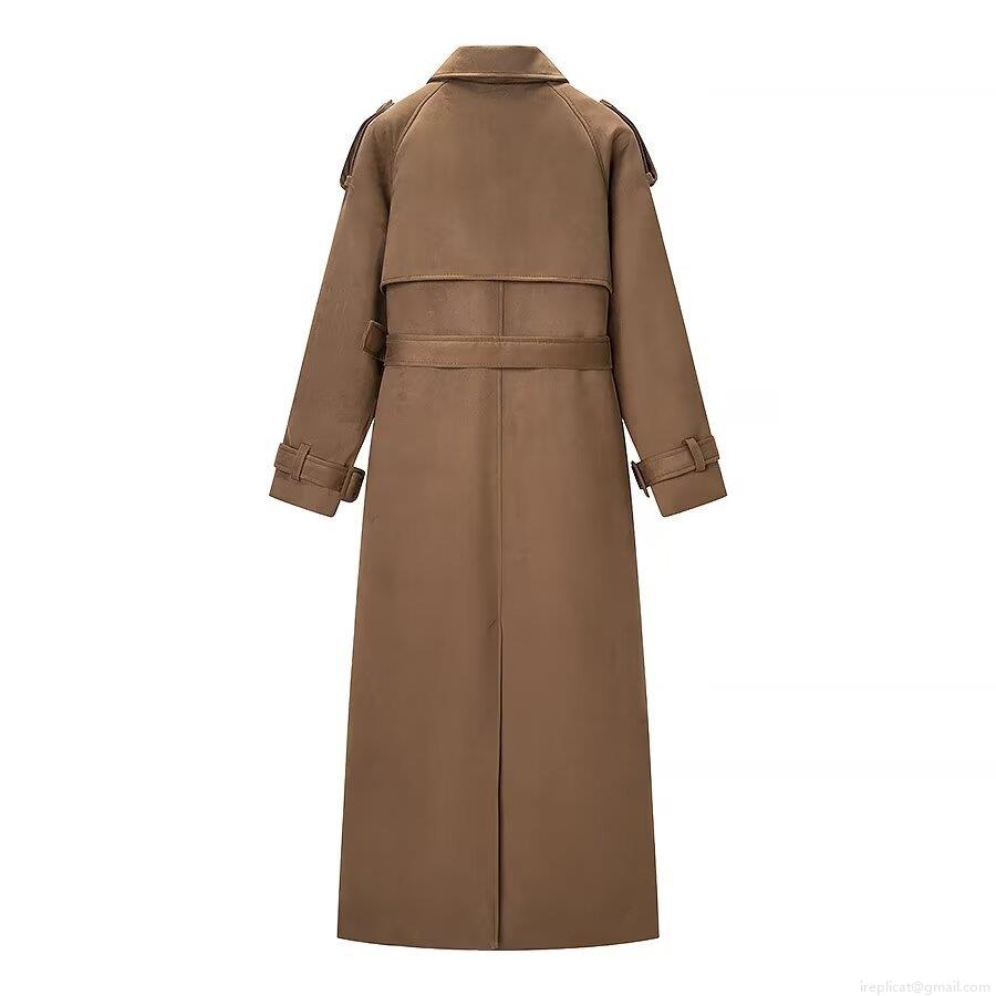 • Women's Long Faux Suede Trench Coat Double Breasted Windbreaker With Belt Casual Elegant Solid Color Lapel Outerwear For Autumn Winter