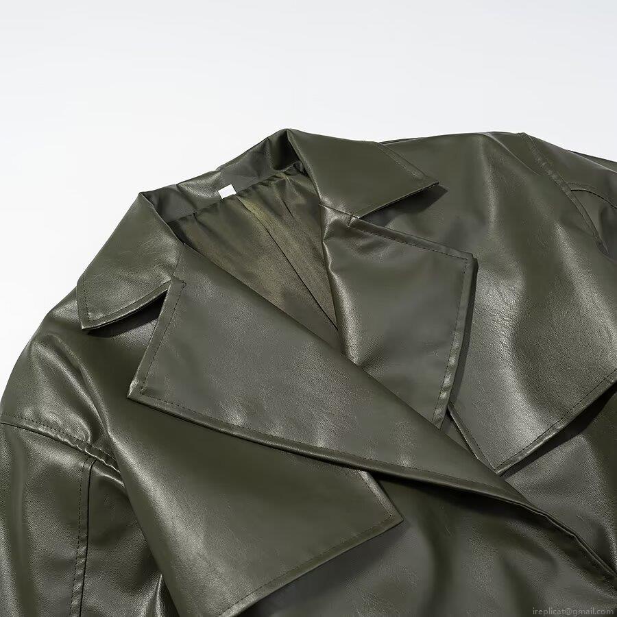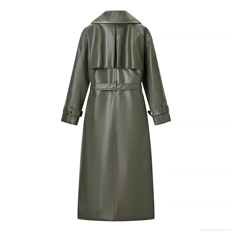 • Women's Long PU Leather Trench Coat British Style Slim Waist Faux Leather Jacket With Belt Winter Warm Windbreaker Overcoat For Women Fashion Streetwear