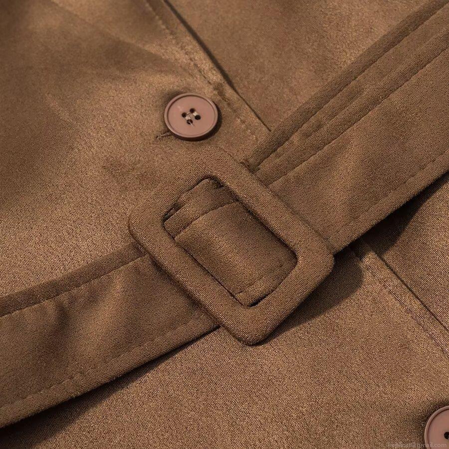 • Women's Long Suede Trench Coat Double Breasted With Belt British Style Slimming Windproof Overcoat For Autumn Winter Office Commuter