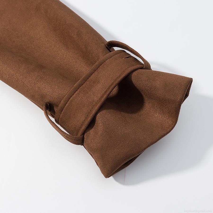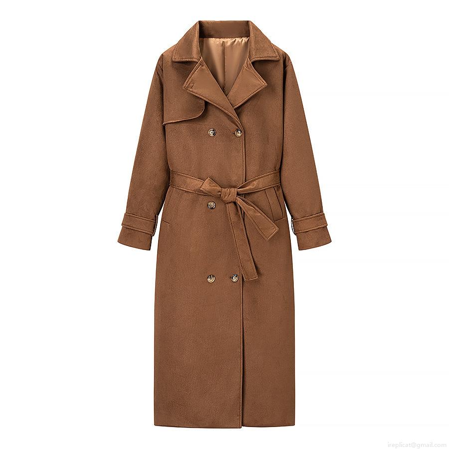 • Women's Long Suede Trench Coat Double-Breasted Retro Lapel Overcoat With Belt Elegant Autumn Winter Outwear Casual Commuting Jacket For Women