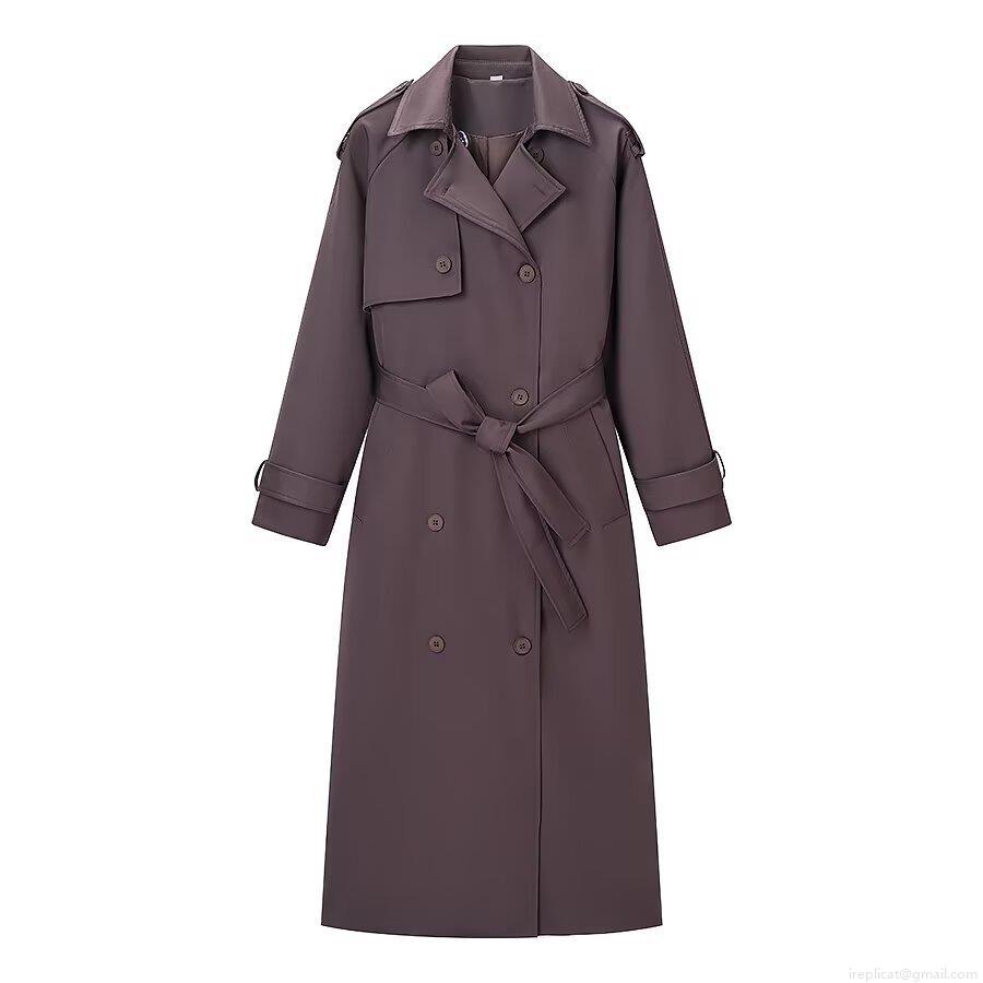 • Women's Long Trench Coat Double Breasted Outerwear With Belt Solid Color Lapel Loose Fit Windbreaker Jacket Autumn Winter Casual Overcoat