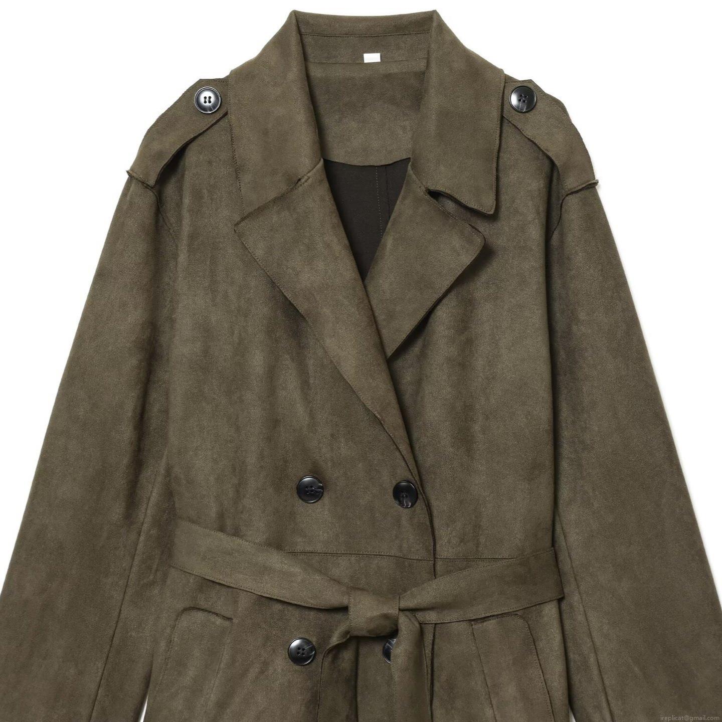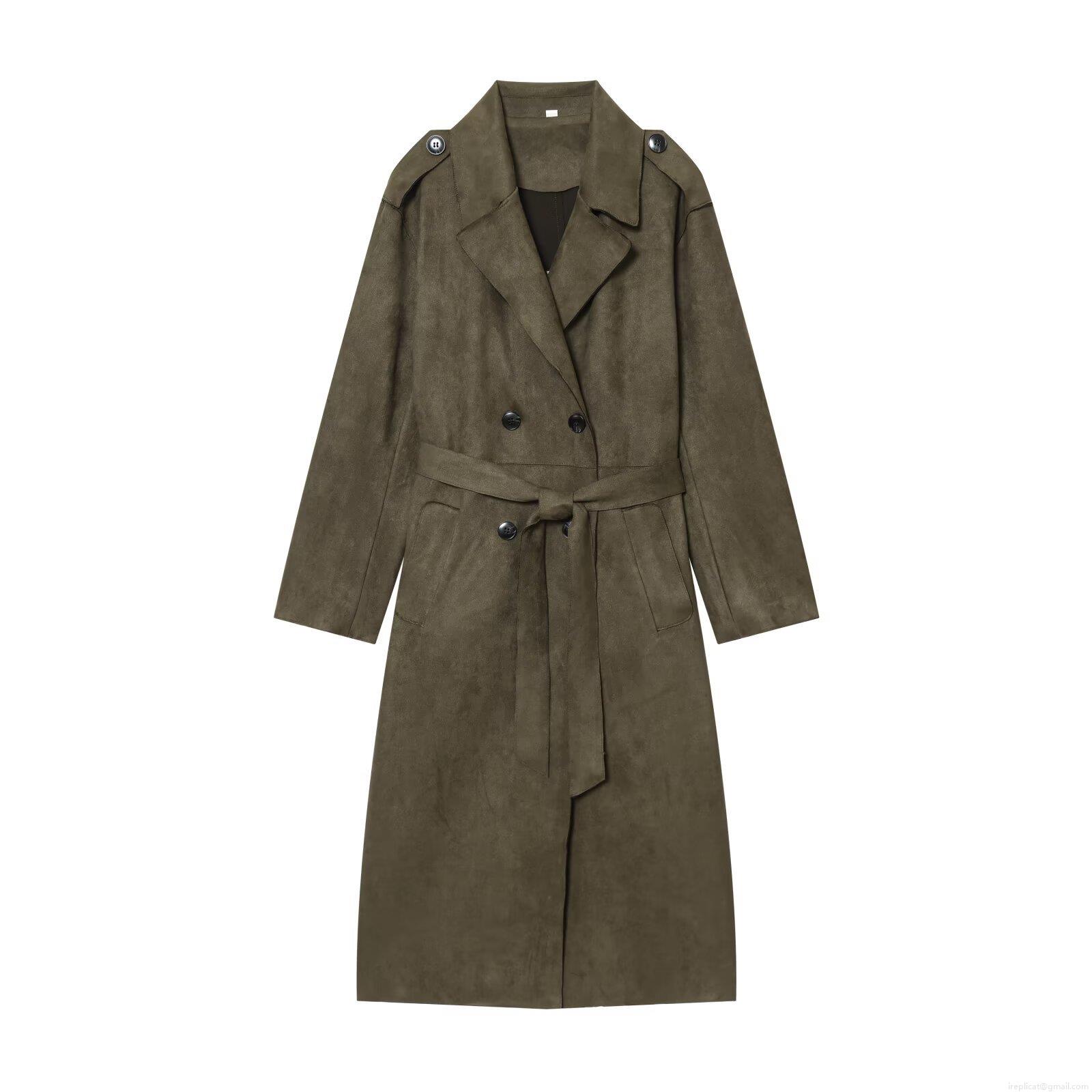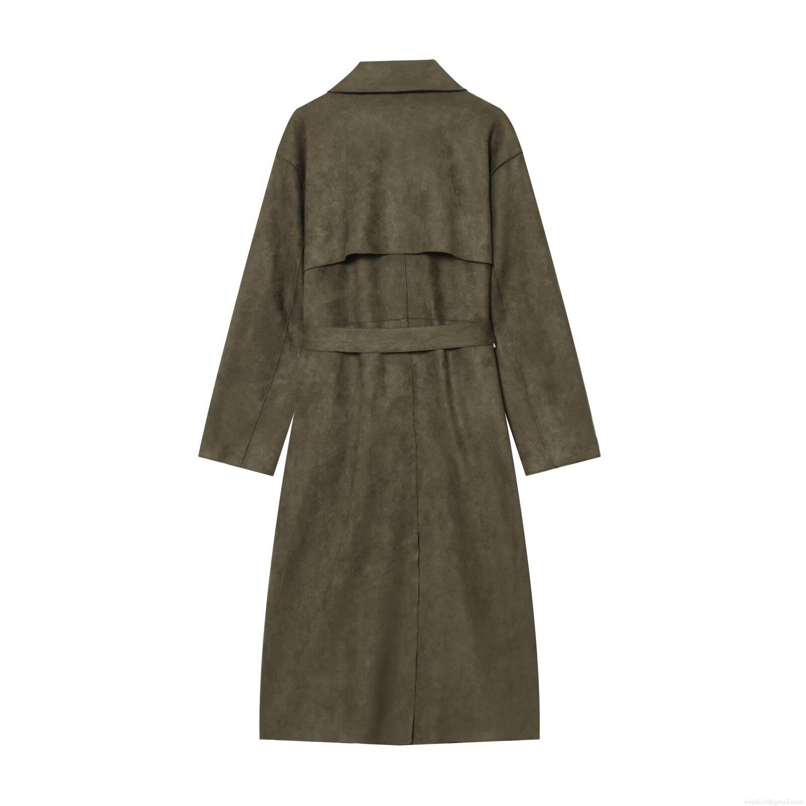 • Women's Long Trench Coat Suede Effect Double Breasted Belted Autumn Winter Overcoat Solid Color Turn-down Collar Windbreaker Jacket For Ladies Office