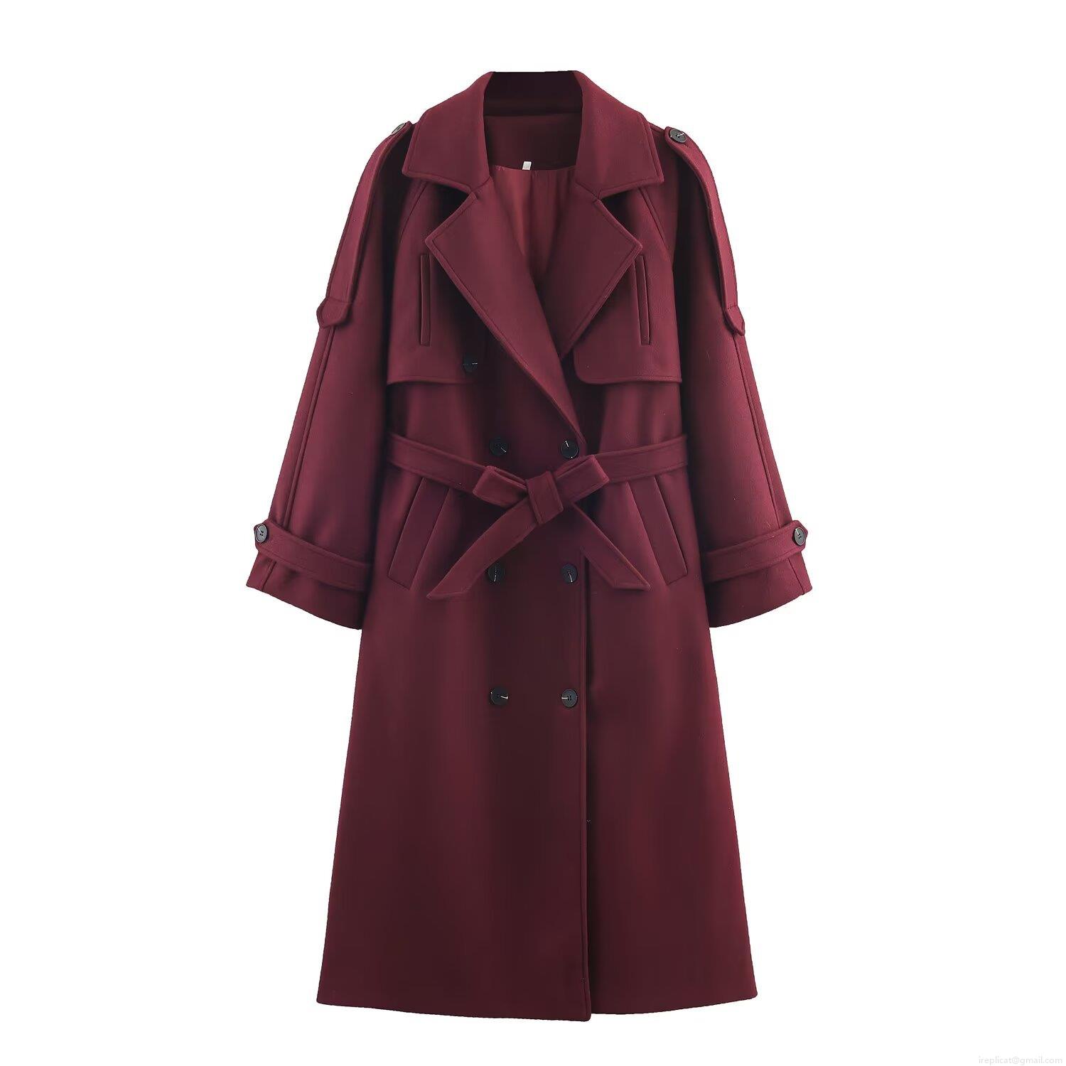 • Women's Long Woolen Coat With Belt Double Breasted Trench Coat Large Lapel Jacket Outerwear For Winter Autumn Streetwear Elegant Ladies Windbreaker