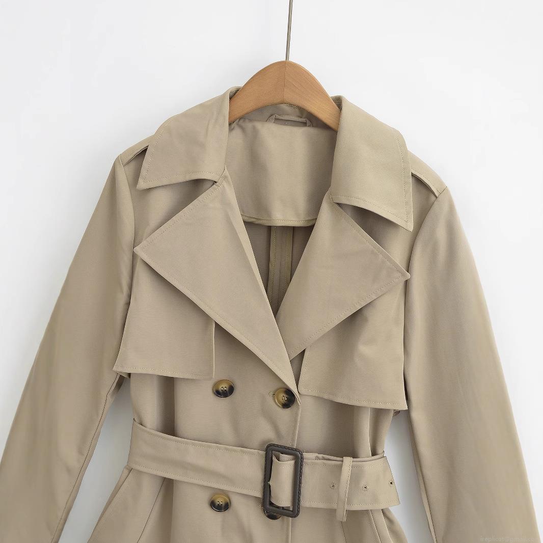 • Women's Mid-Length Trench Coat 100% Polyester Double-Breasted Windproof With Belt For Autumn Daily Street Style Elegant Khaki Overcoat