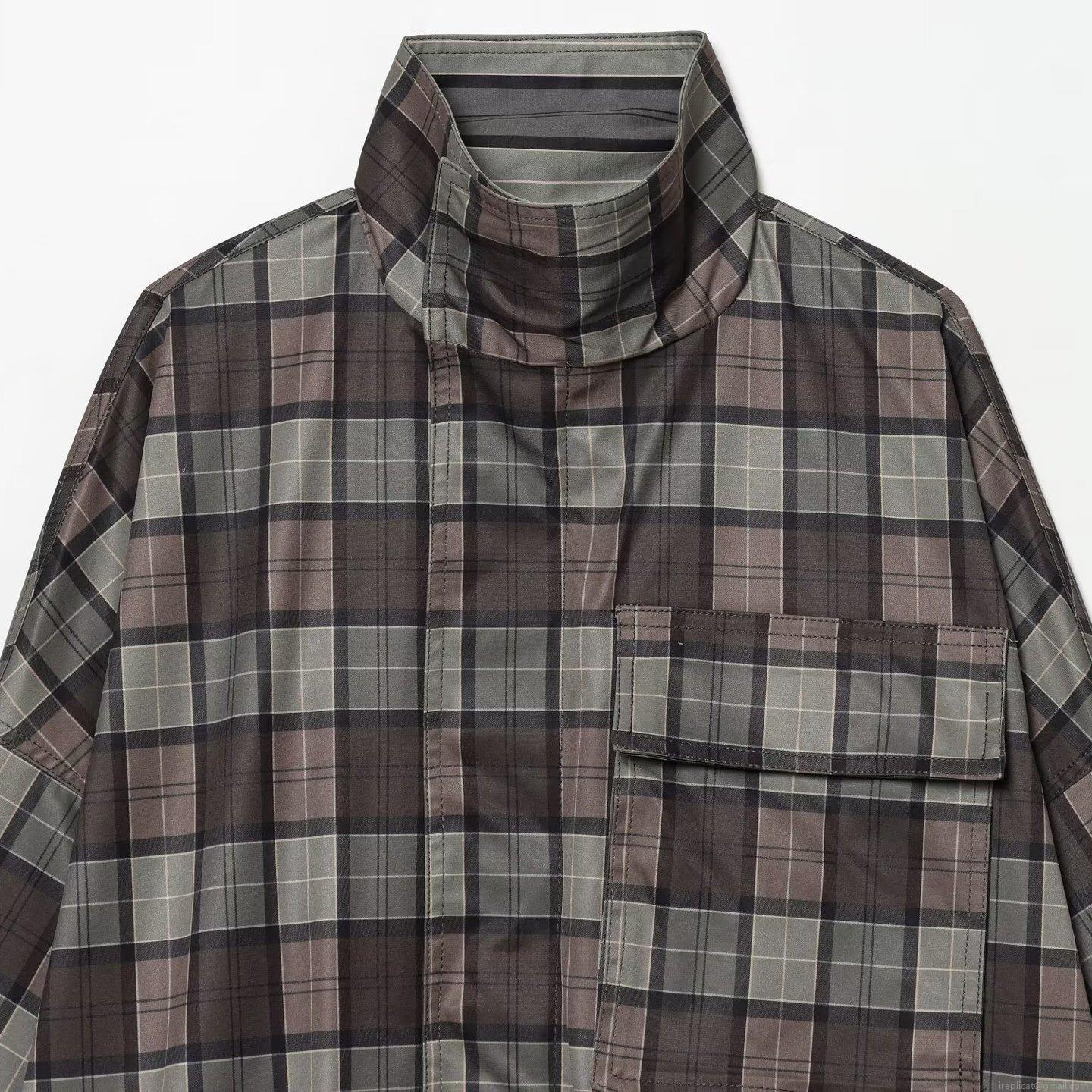 Splice, Checkered Pattern, Stand-up Collar, Single-breasted