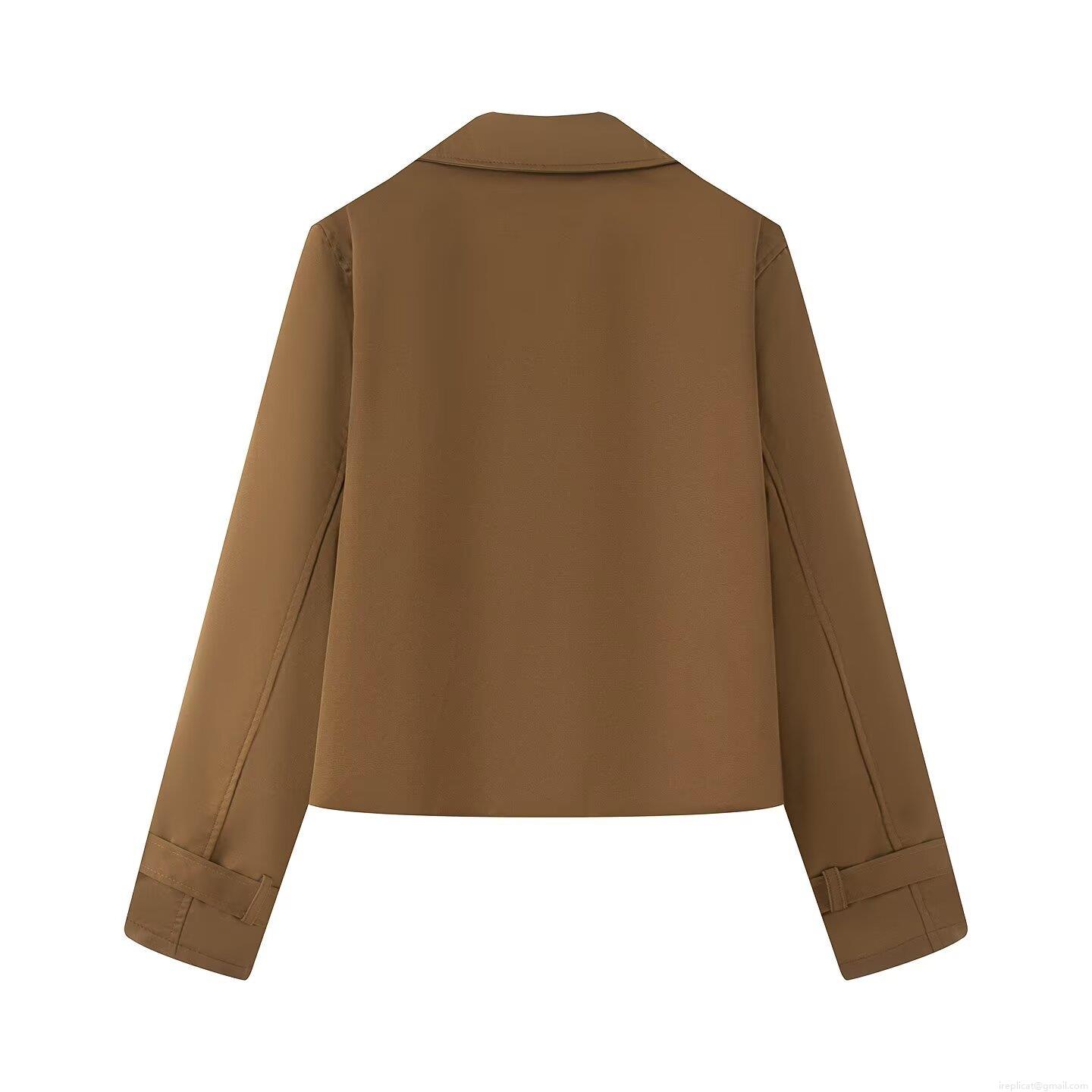 • Women's Short Double Breasted Trench Coat Jacket With Large Lapel And Cuff Straps Fashion Casual Commuting Polyester Spandex Blend Outerwear Autumn Top