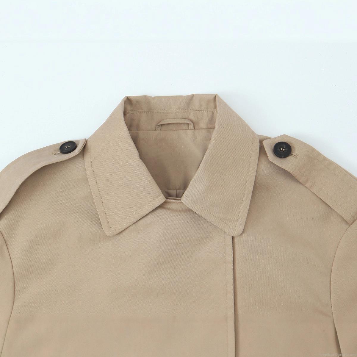 • Women's Short Double Breasted Trench Coat Khaki Lapel Windbreaker Jacket With Epaulettes And Sleeve Straps Elegant Casual Spring Outerwear For Women