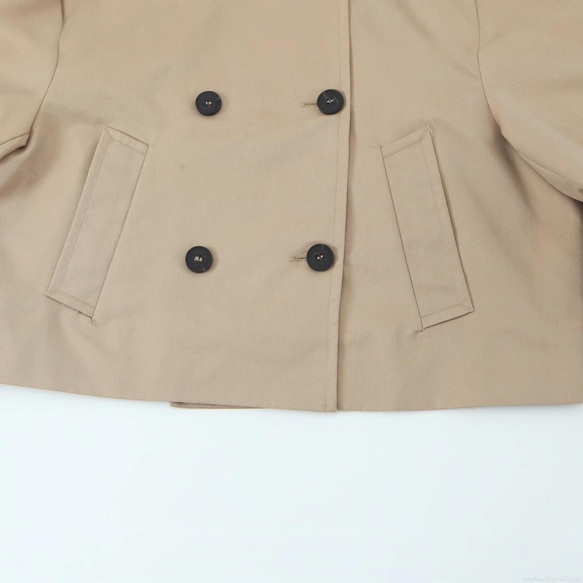 Women's Short Double Breasted Trench Coat Khaki Lapel Windbreaker Jacket With Epaulettes And Sleeve Straps Elegant Casual Spring Outerwear For Women