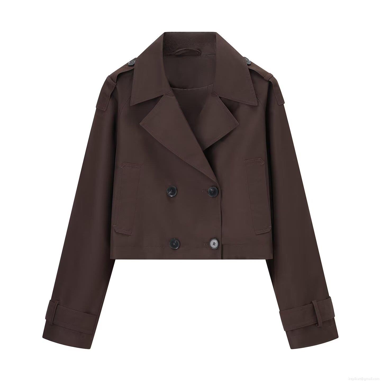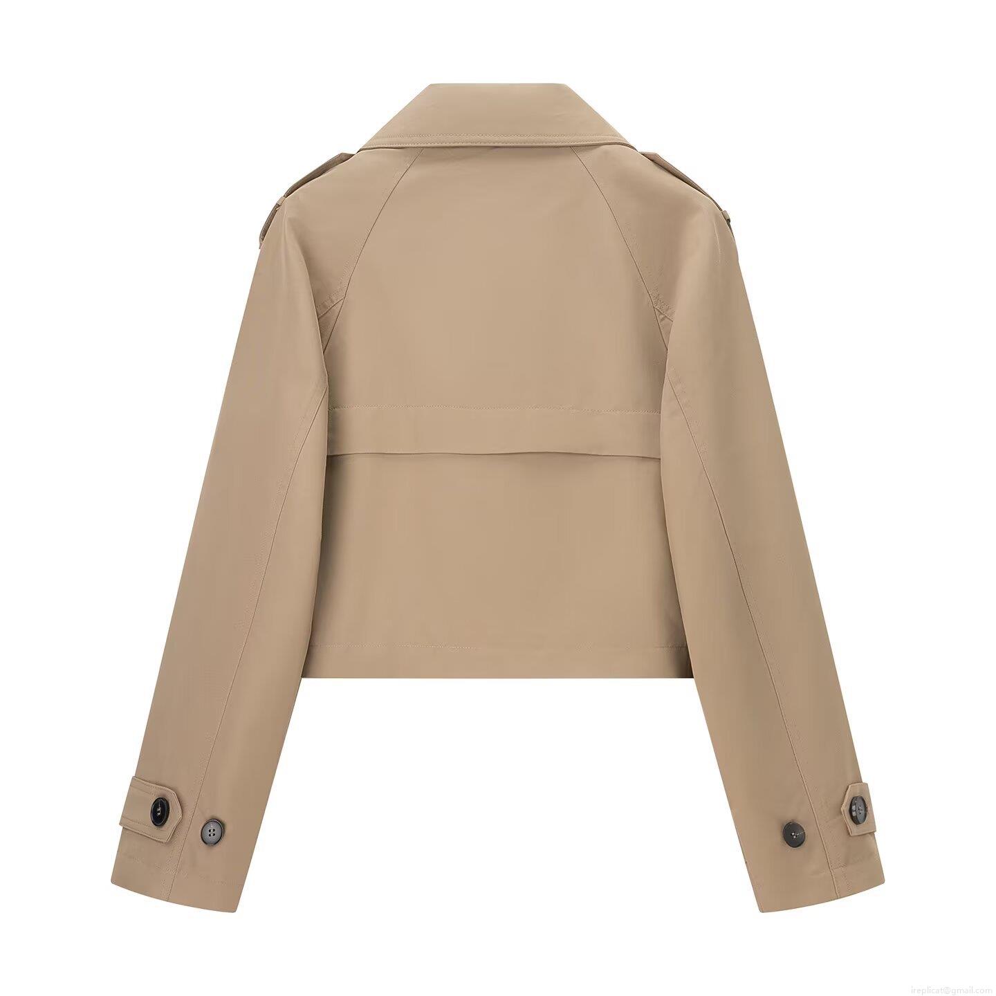 Women's Short Double Breasted Trench Coat Polyester Solid Color Lapel Long Sleeve Streetwear Fashion Jacket Autumn Outerwear
