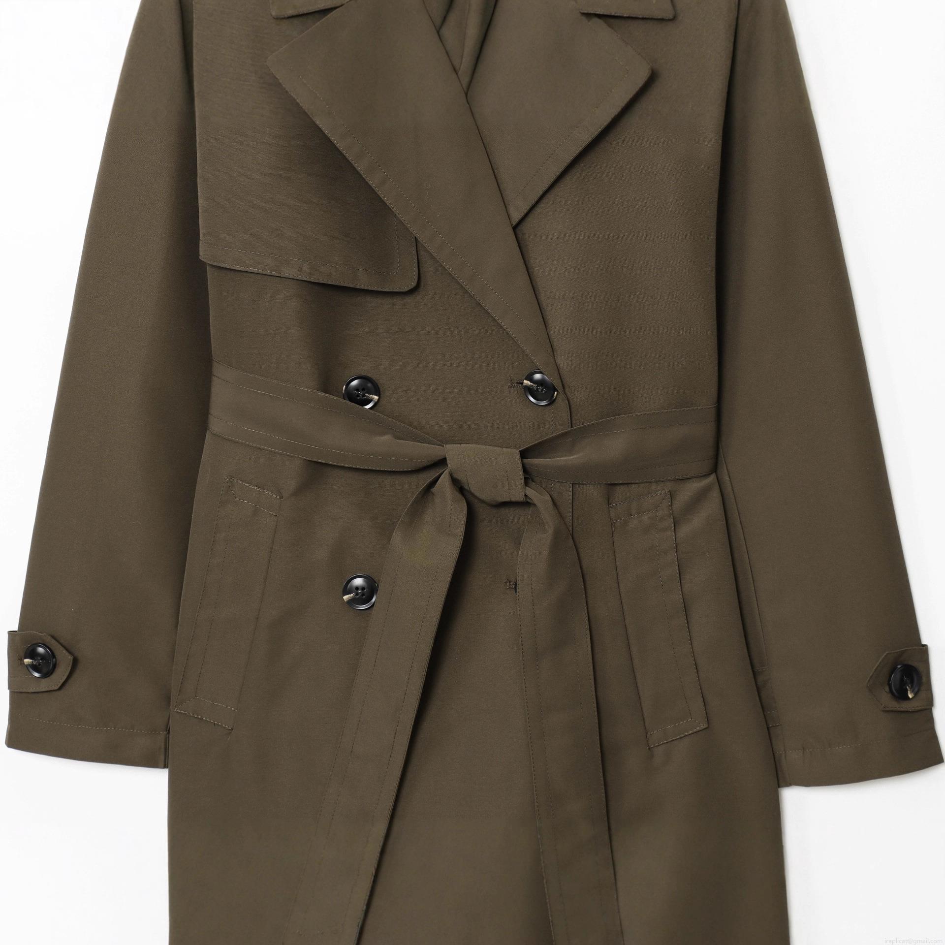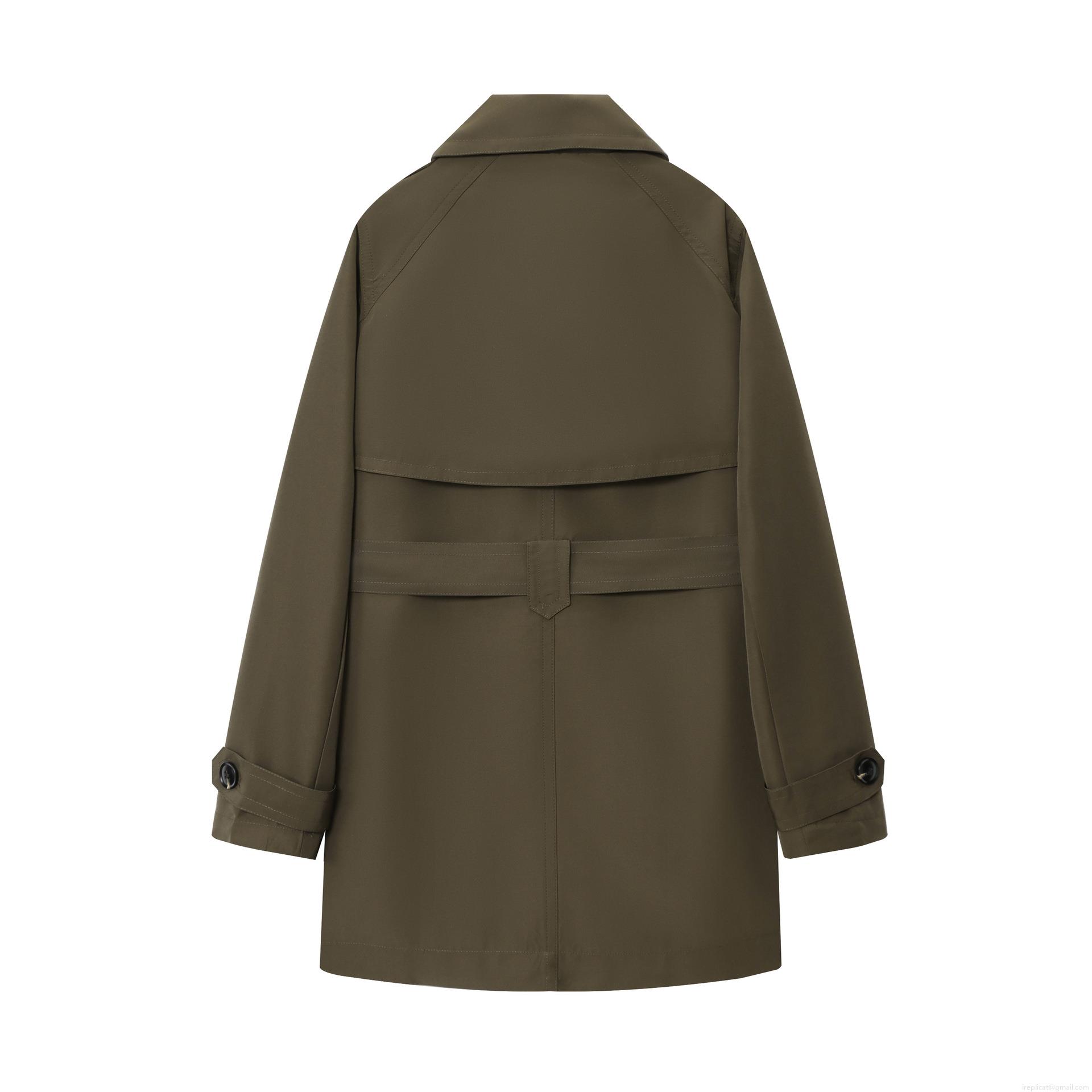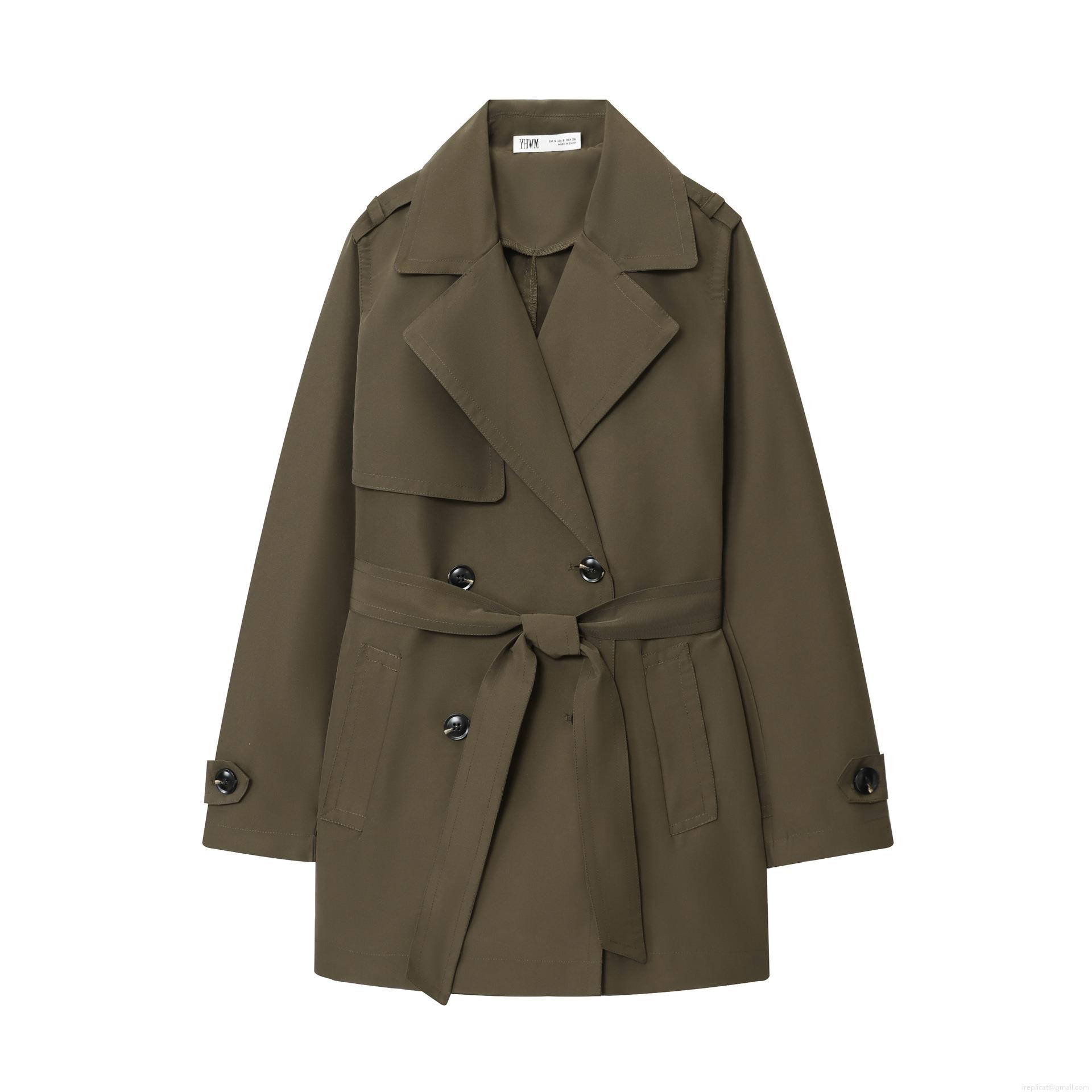 • Women's Short Double-Breasted Trench Coat Water-Resistant Windproof Autumn Jacket With Belt Lapel Collar Olive Green Casual Elegant Outerwear For Women