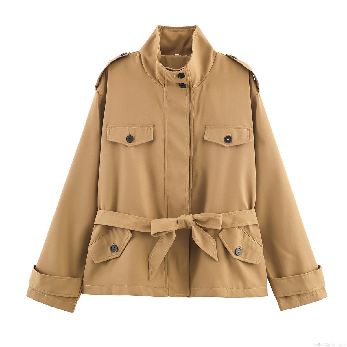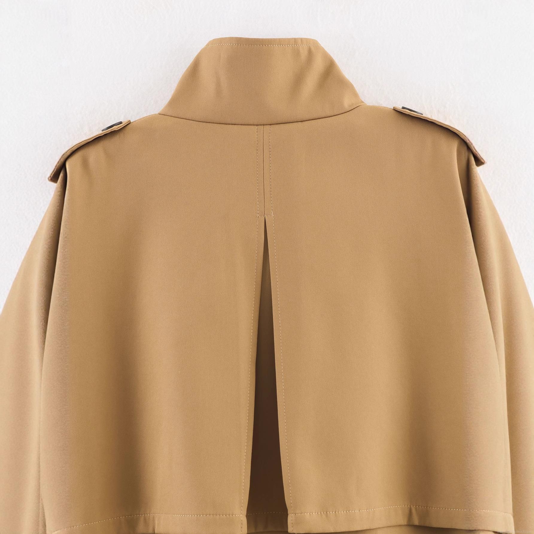 • Women's Short Khaki Trench Coat Jacket 100% Polyester Windproof Fall Outerwear With Waist Belt And Epaulets Casual Workwear Style