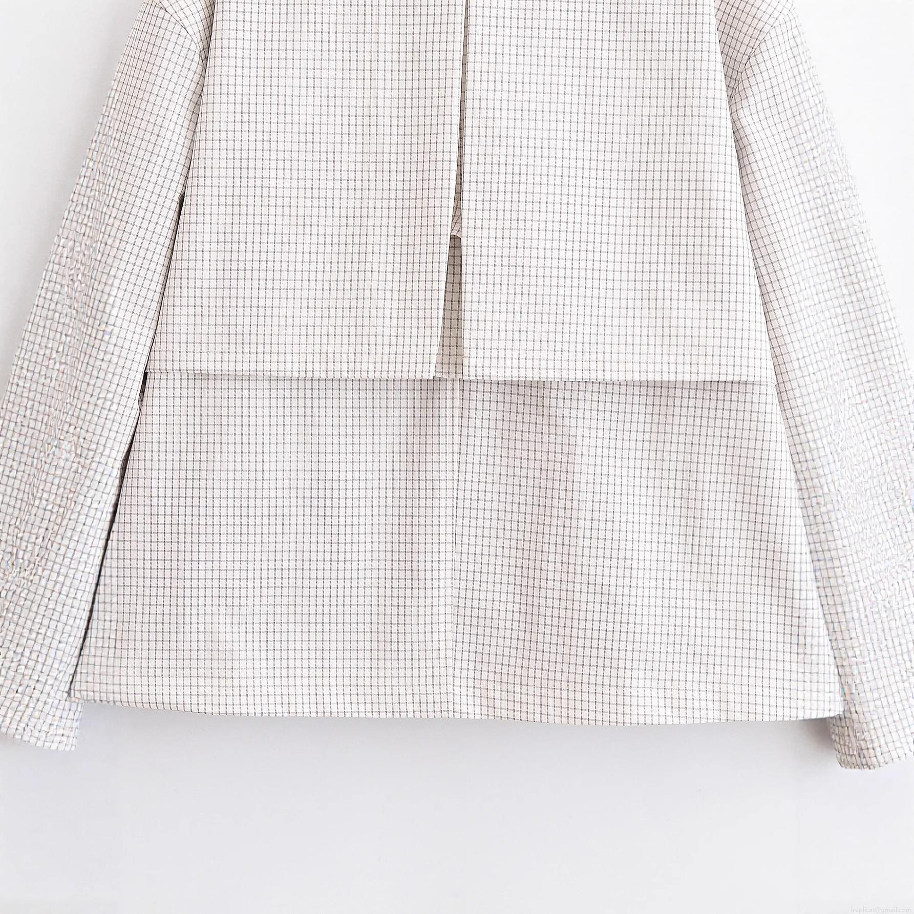 Fine Check, Single-breasted, Splicing Process, Color-blocked Collar