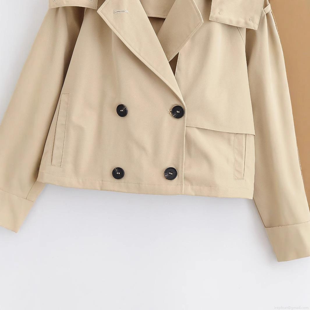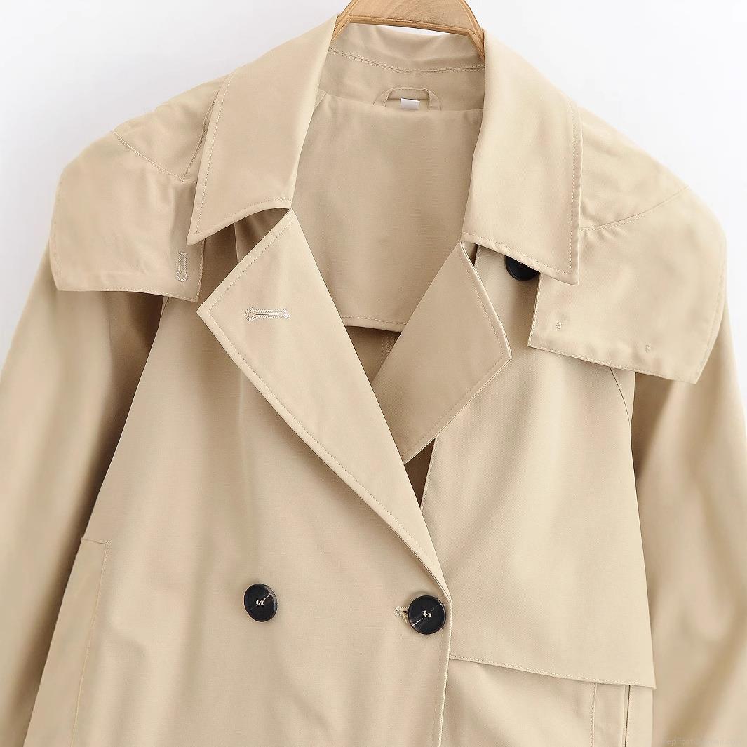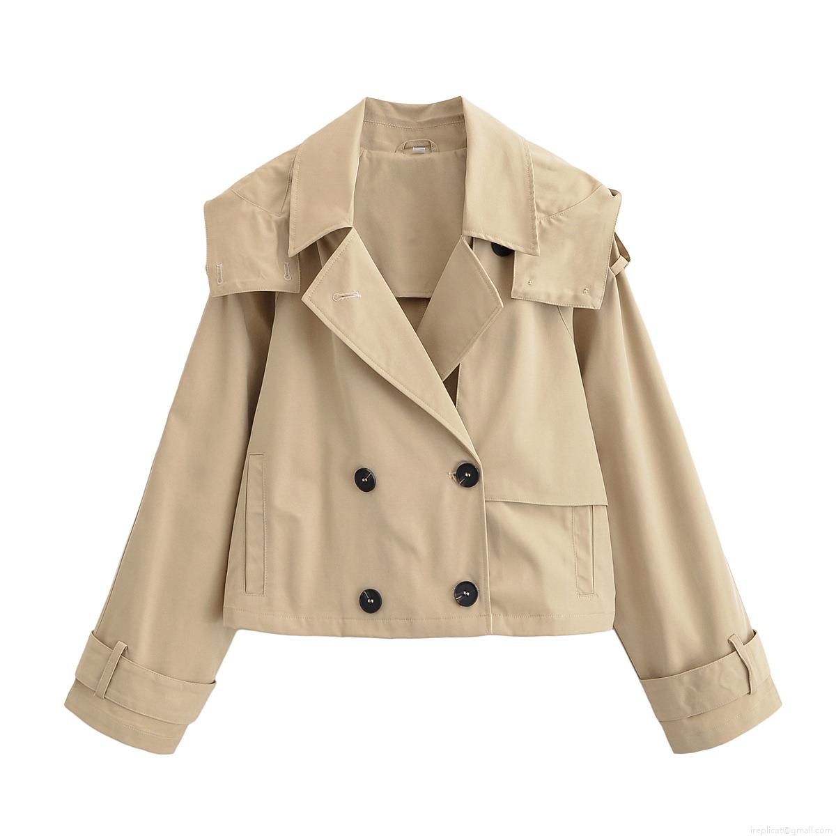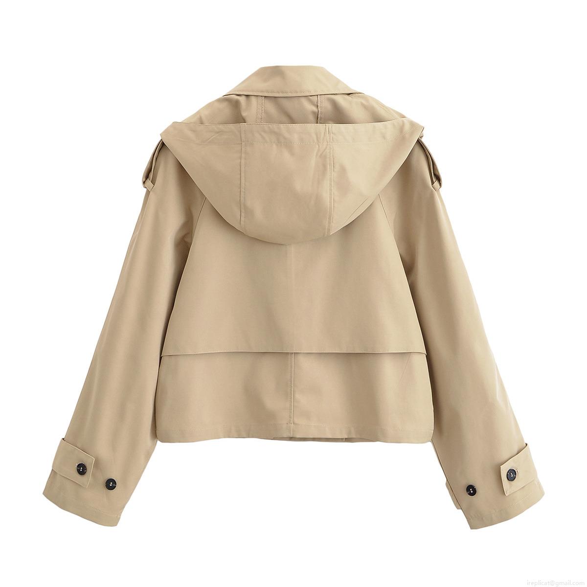 Women's Short Trench Coat 100% Polyester Double Breasted Hooded Jacket Classic Lapel Windbreaker For Casual Office Lady Spring Autumn