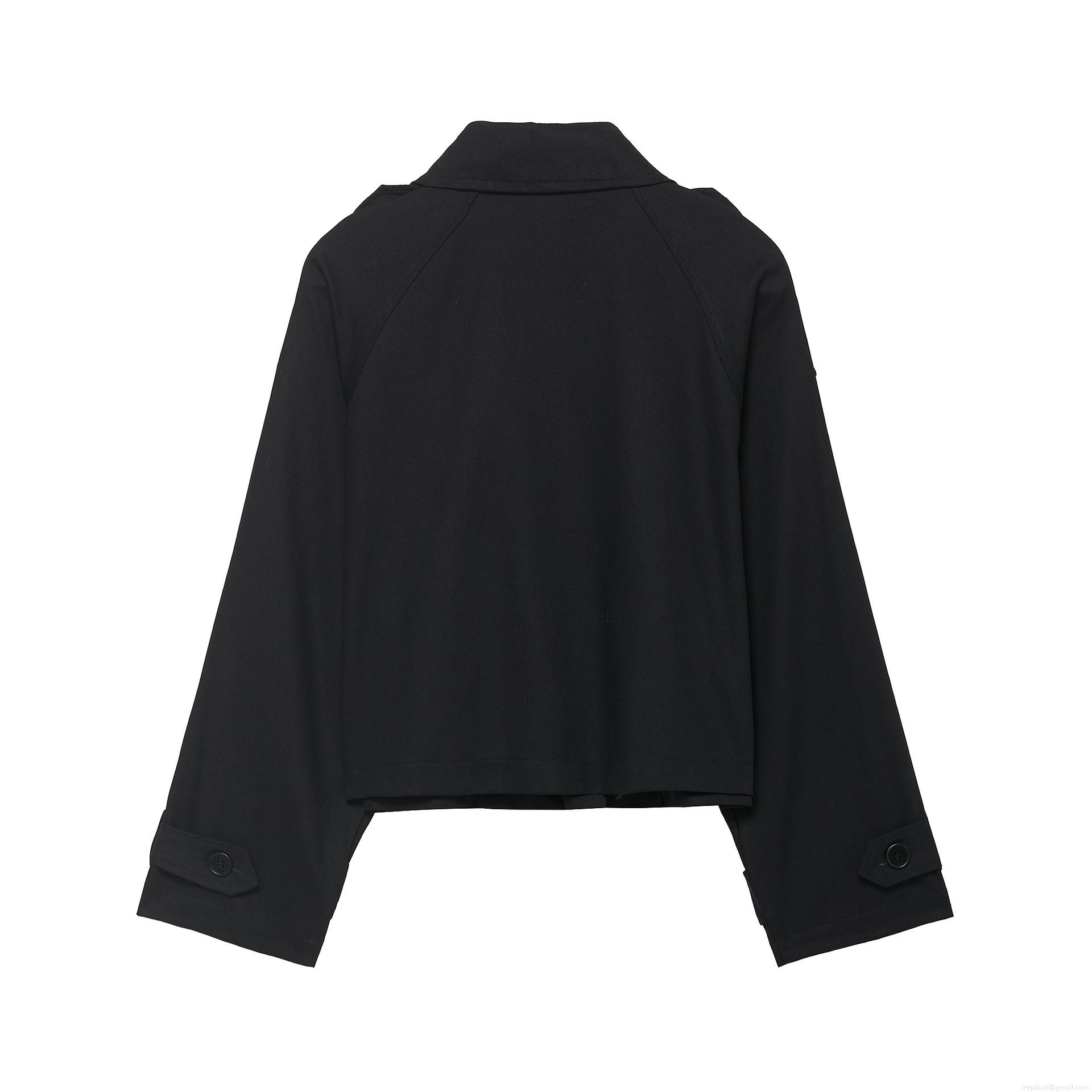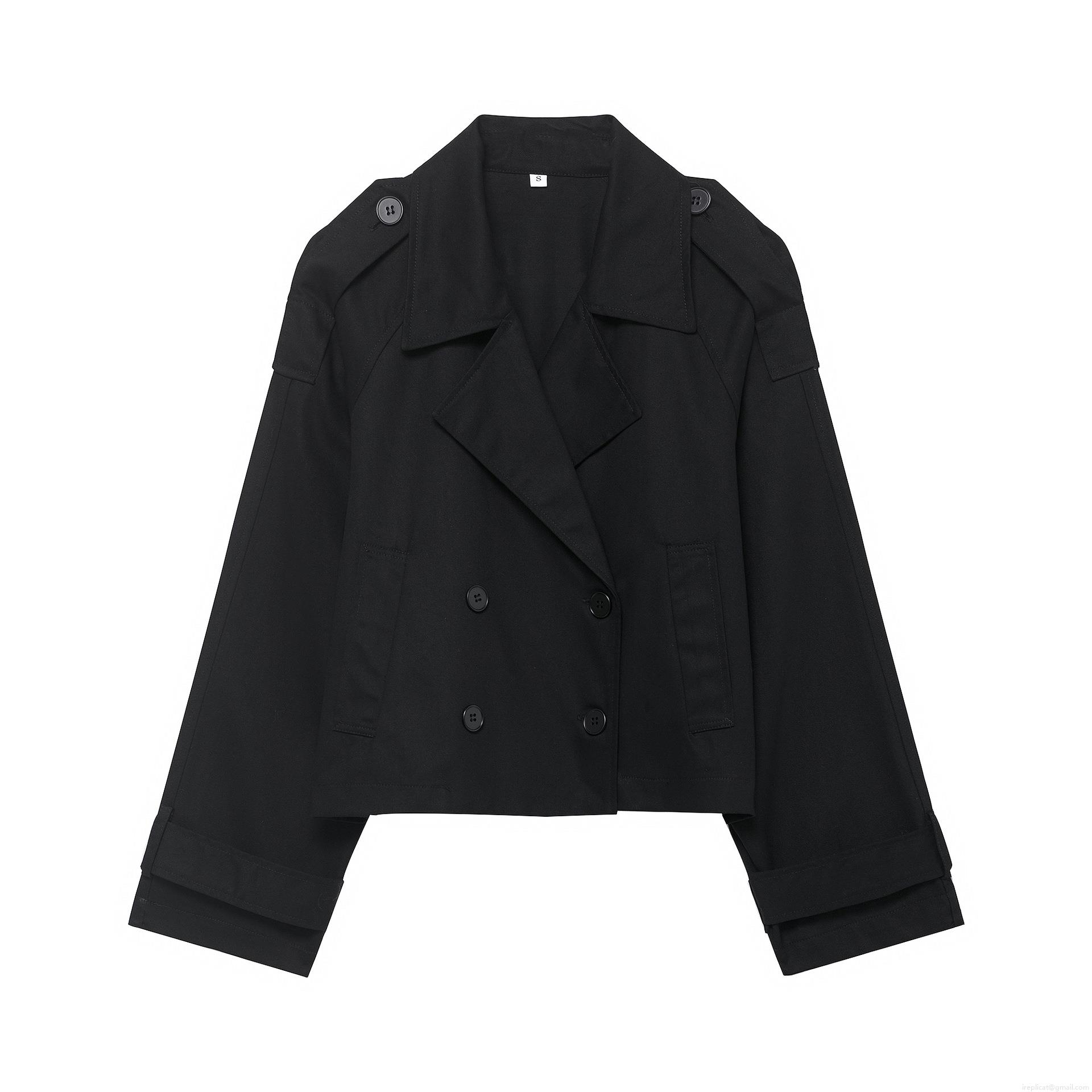 • Women's Short Trench Coat 100% Polyester Double Breasted Lapel Jacket With Epaulets Casual Solid Color Long Sleeve Outerwear For Autumn Winter