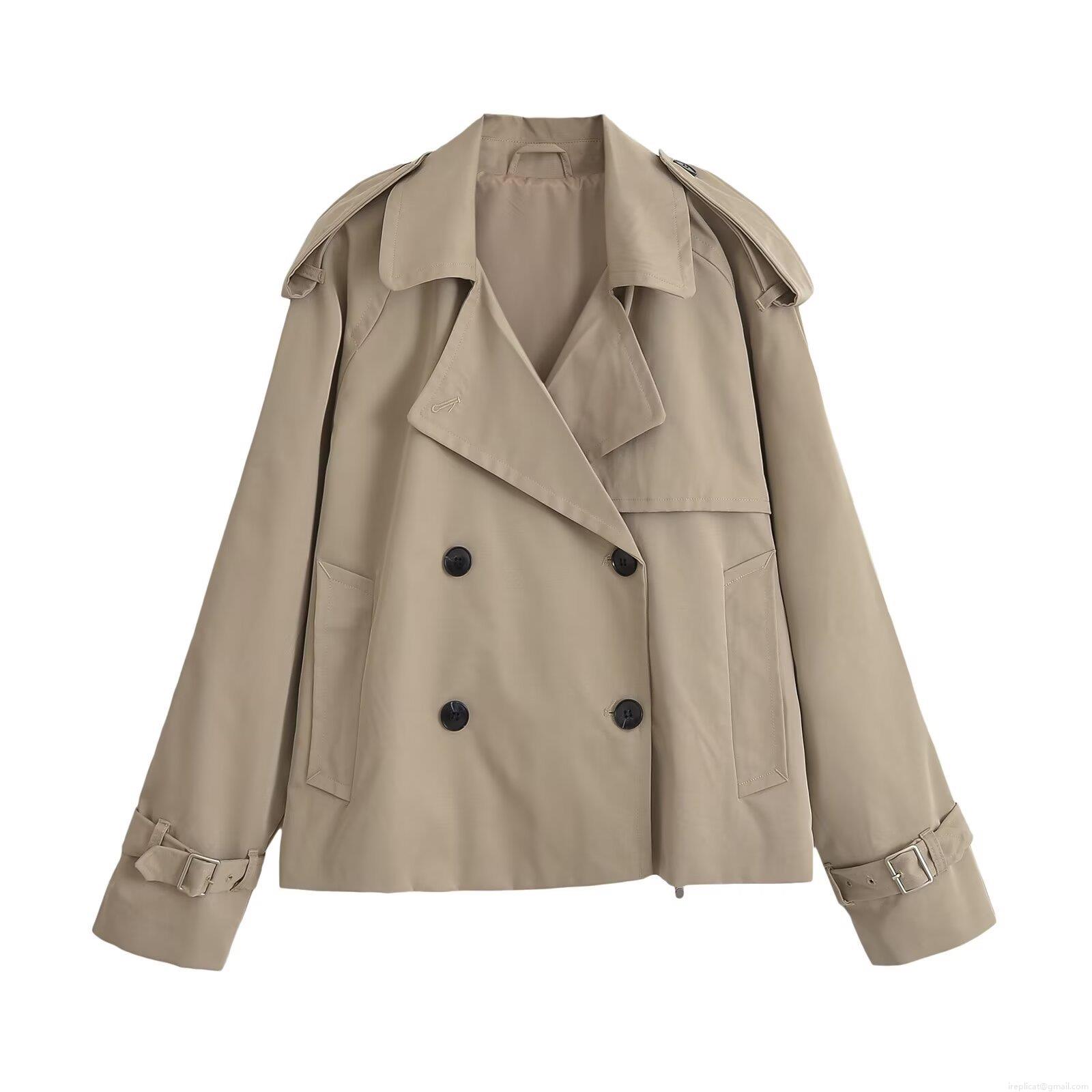 • Women's Short Trench Coat 100% Polyester Double Breasted Lapel Windbreaker With Epaulettes Adjustable Cuffs Casual Streetwear Jacket For Spring Autumn Women Outerwear