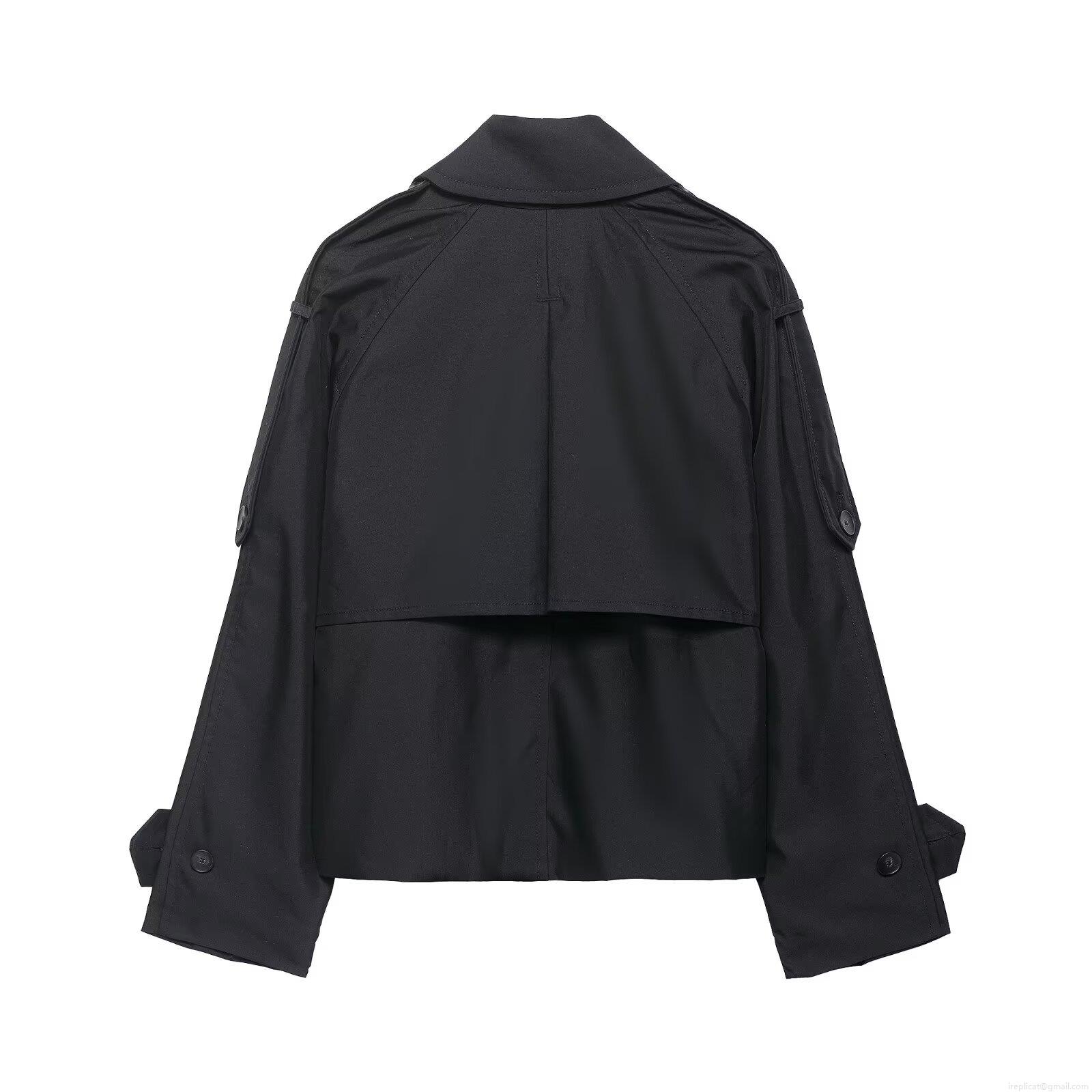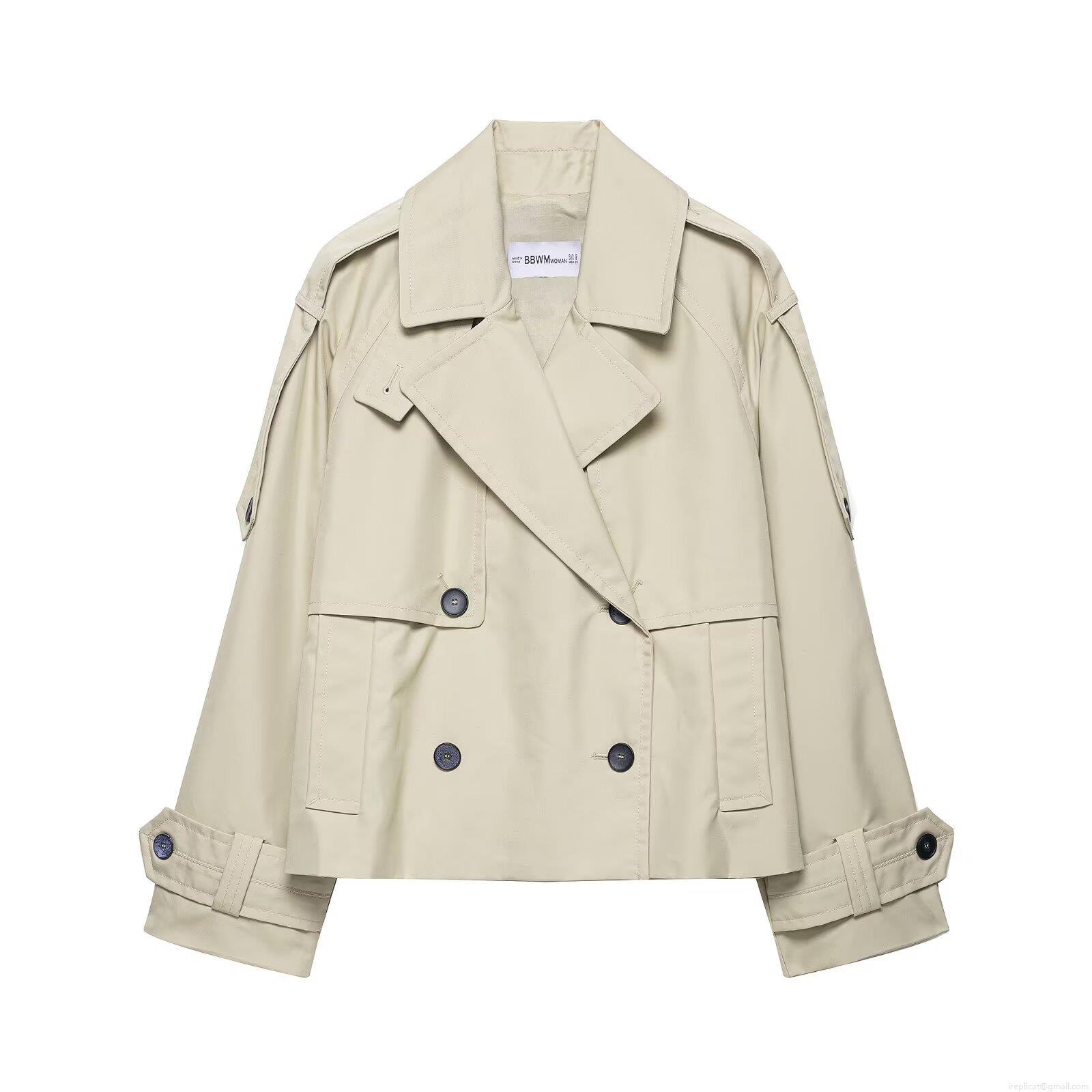 • Women's Short Trench Coat 100% Polyester Water Repellent Double Breasted Jacket With Shoulder Straps British Style Elegant Windbreaker For Spring Autumn Women