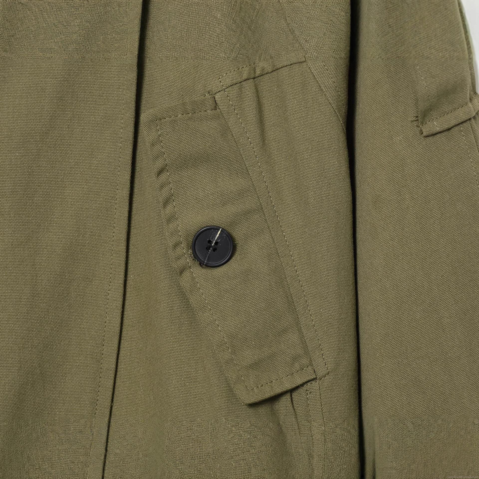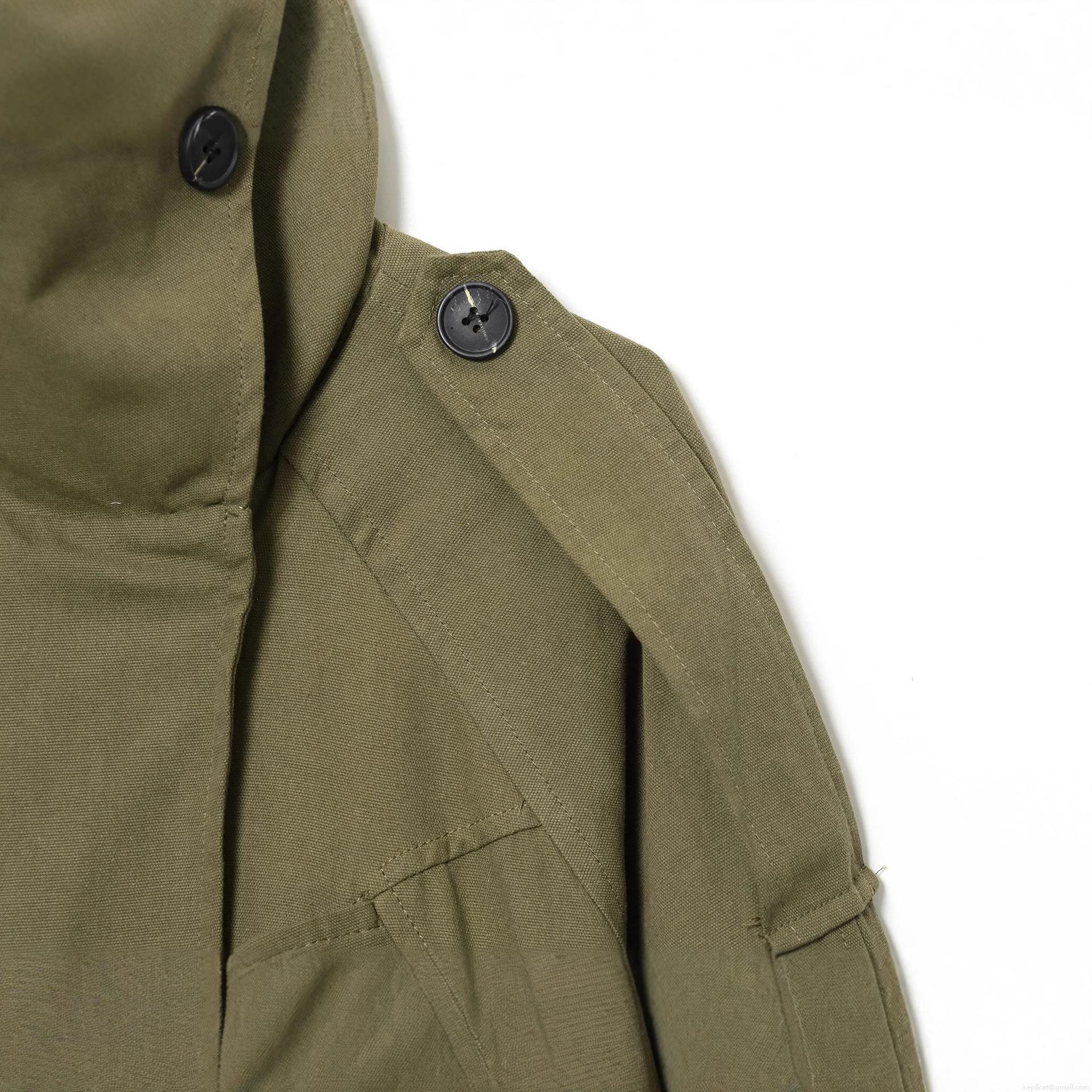 Solid Color, Belt, Shoulder Epaulettes, Stand-up Collar, Black Buttons
