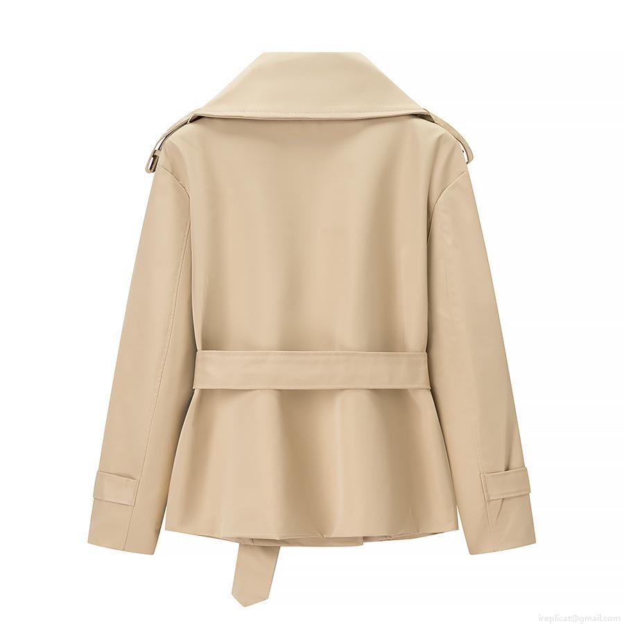 • Women's Short Trench Coat Belted Polyester Spandex Windbreaker Jacket Double Breasted Lapel Outerwear For Office Daily Chic British Style