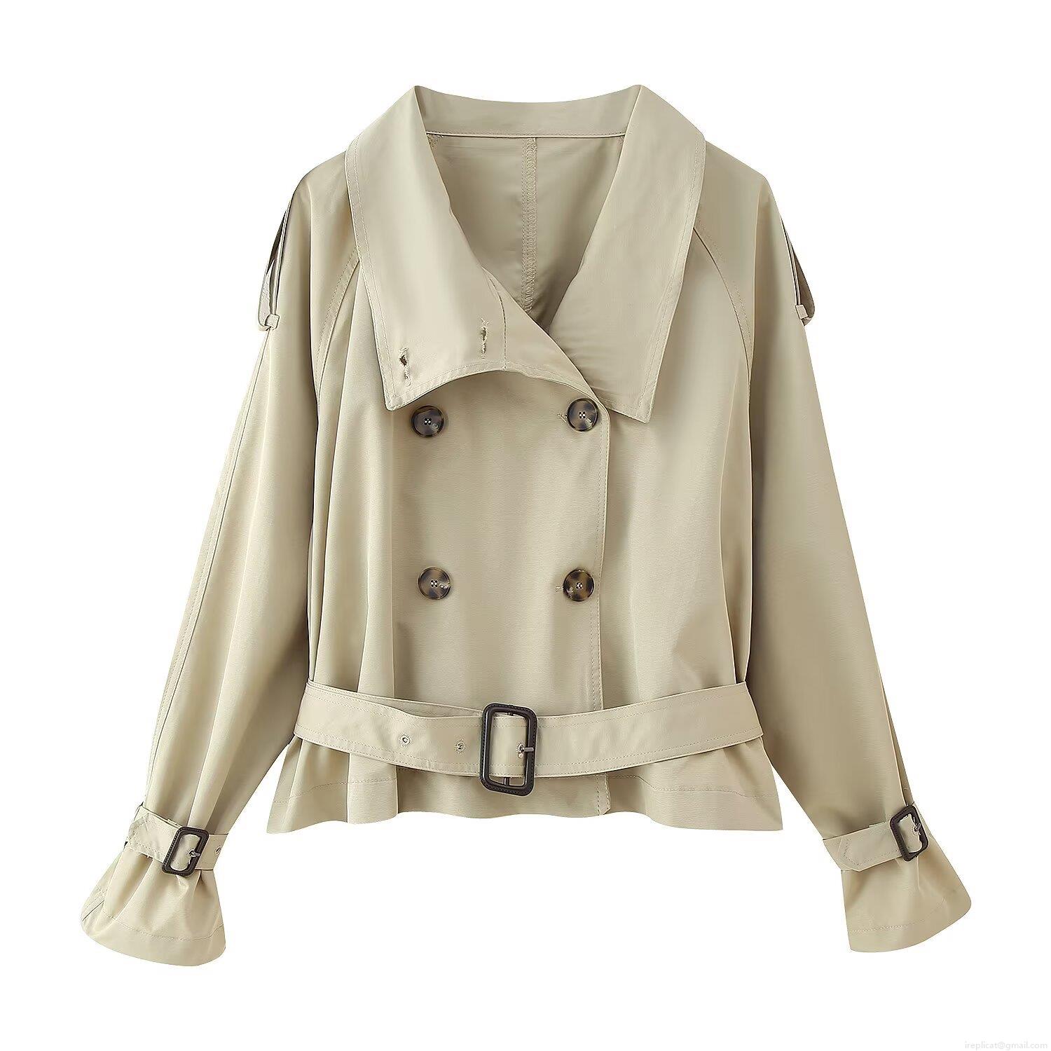 • Women's Short Trench Coat Double Breasted Lapel Jacket With Belt Solid Color Polyester Fashion Casual Windproof Outwear For Spring Autumn