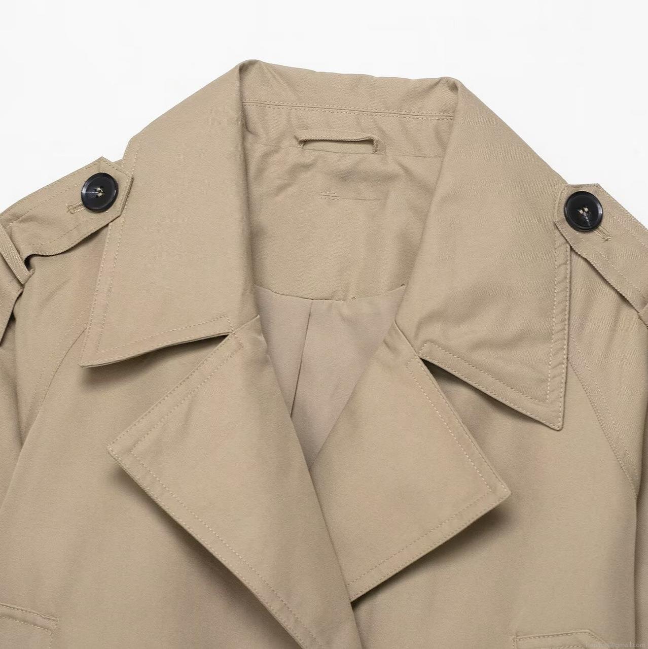 • Women's Short Trench Coat Double Breasted Lapel Jacket With Epaulets British Style Classic Commuter Windbreaker Outerwear For Autumn Winter