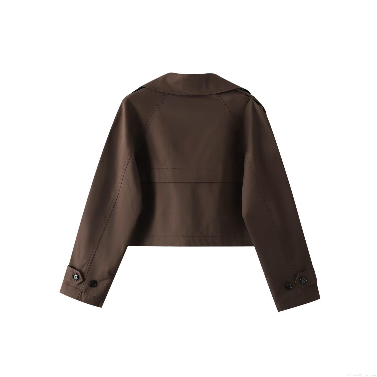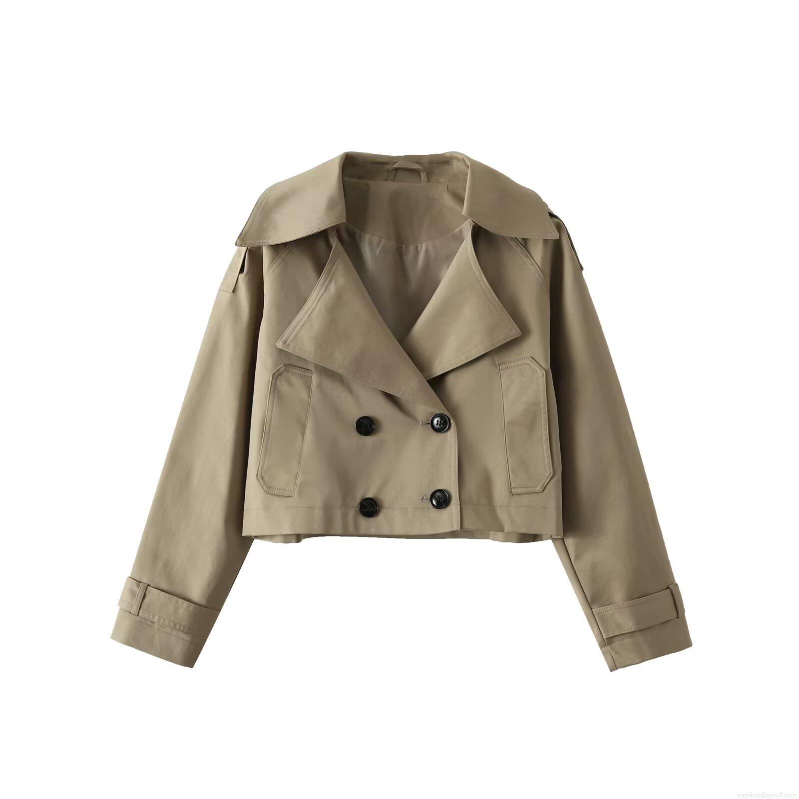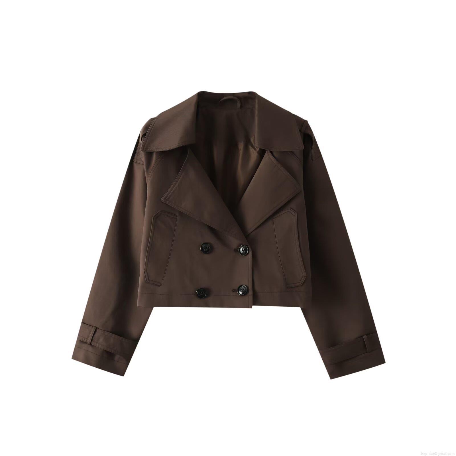 • Women's Short Trench Coat Double Breasted Long Sleeve Lapel Jacket Polyester Solid Color Autumn Outerwear Casual Streetwear Style Windbreaker For Women